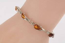 Eight Amber Flower Link Statement Piece Sterling Silver Bracelet 7.50"!