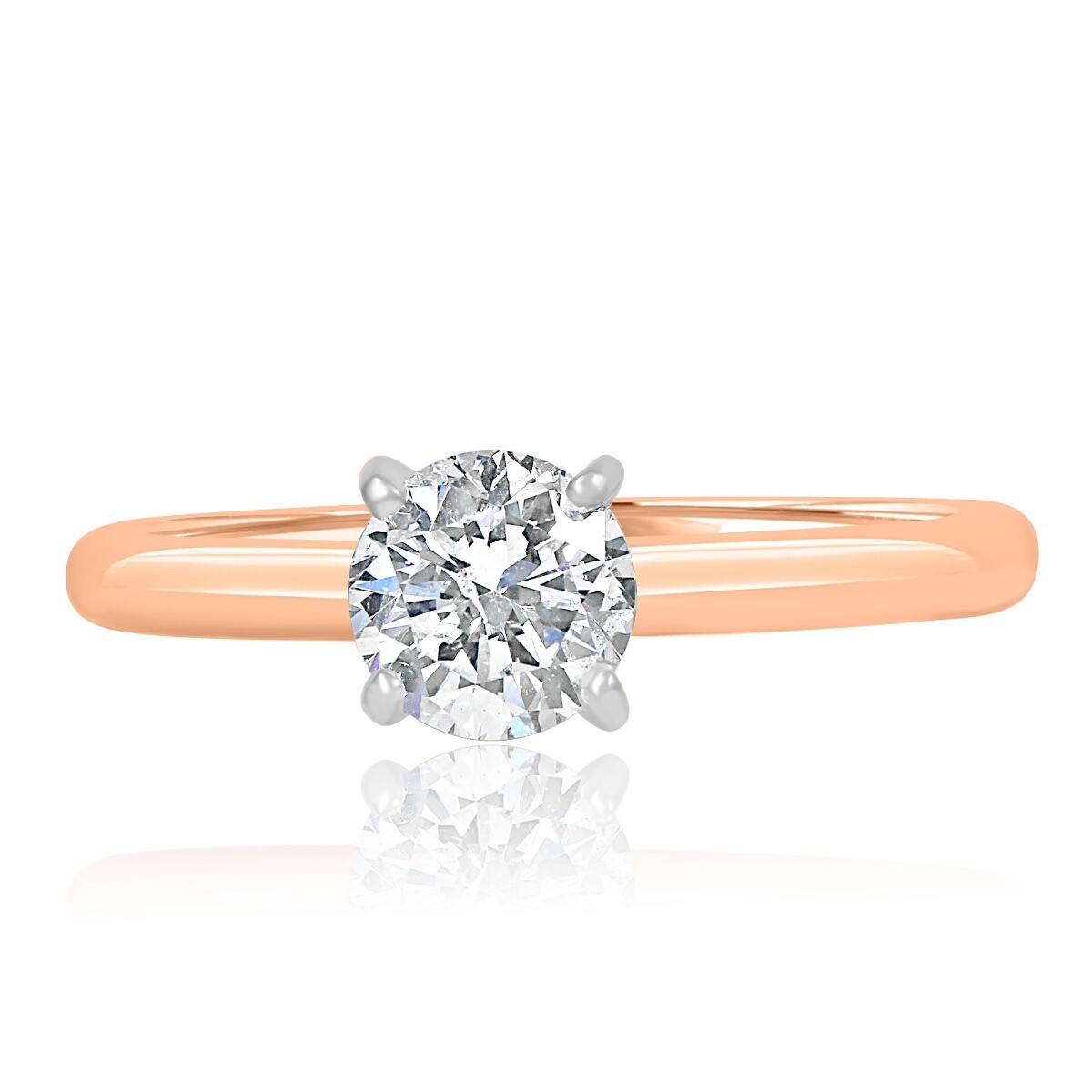 GIA zertifiziert 0,70 CT Solitaire Round Diamond -Verlobungsring 14K Rosegold