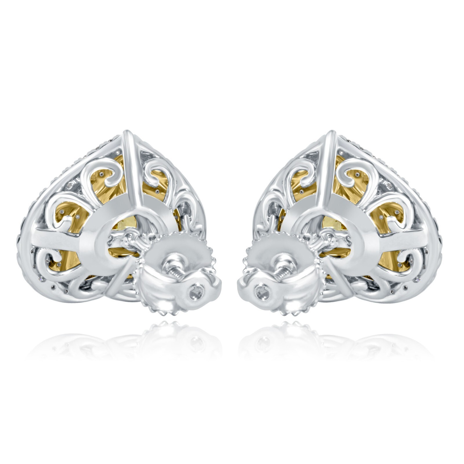 Erhohen Sie Ihre Eleganz mit unseren atemberaubenden Holzerohrringen mit GIA -zertifizierten Diamanten. Jeder Ohrring verfügt über einen faszinierenden 1 Karat und einen 1,10-Karat-Fancy Yellow Heart-Form-Diamanten, der von einem doppelten Halo aus gelben und farblosen runden Brillanten umarmt wird. Die exquisite Anordnung spielt in 18 Karat zweifarbigem Gold und verleiht jedem Anlass einen Hauch von Raffinesse. Machen Sie eine Erklarung mit diesen strahlenden Ohrringen ab, die außergewohnliche Handwerkskunst mit zeitloser Schonheit verbinden. Das Gesamtkarat -Gewicht betragt 2,70 Karat.