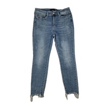 Judy Blue Jeans Womens Size 13/31 Skinny Fit Bleach Splatter Raw Hem Blue Denim