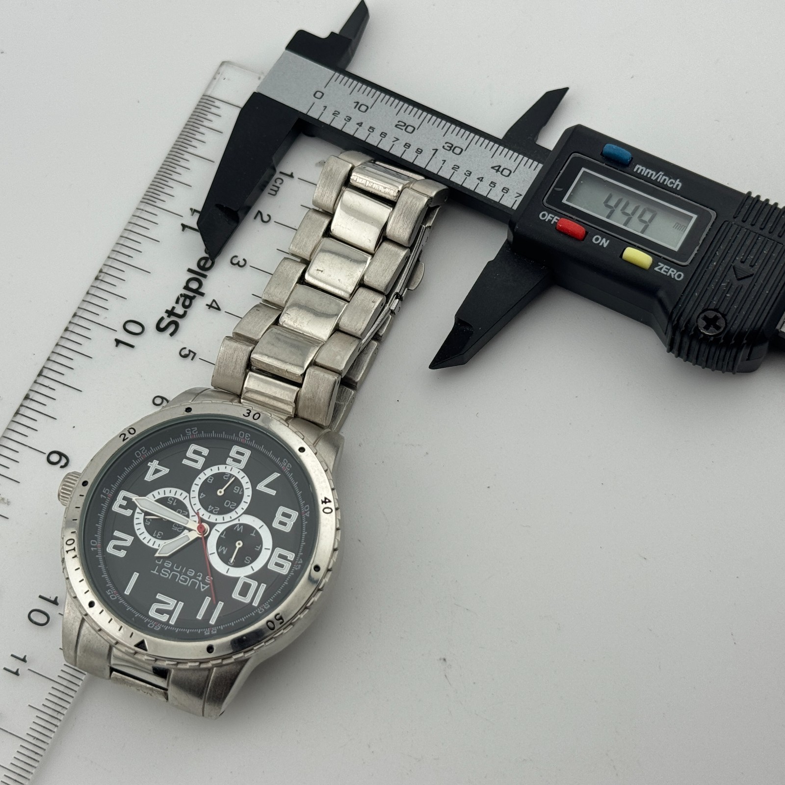 August Steiner Quartz Watch Men 30m Silver Black Day Date Analog New Battery 8"