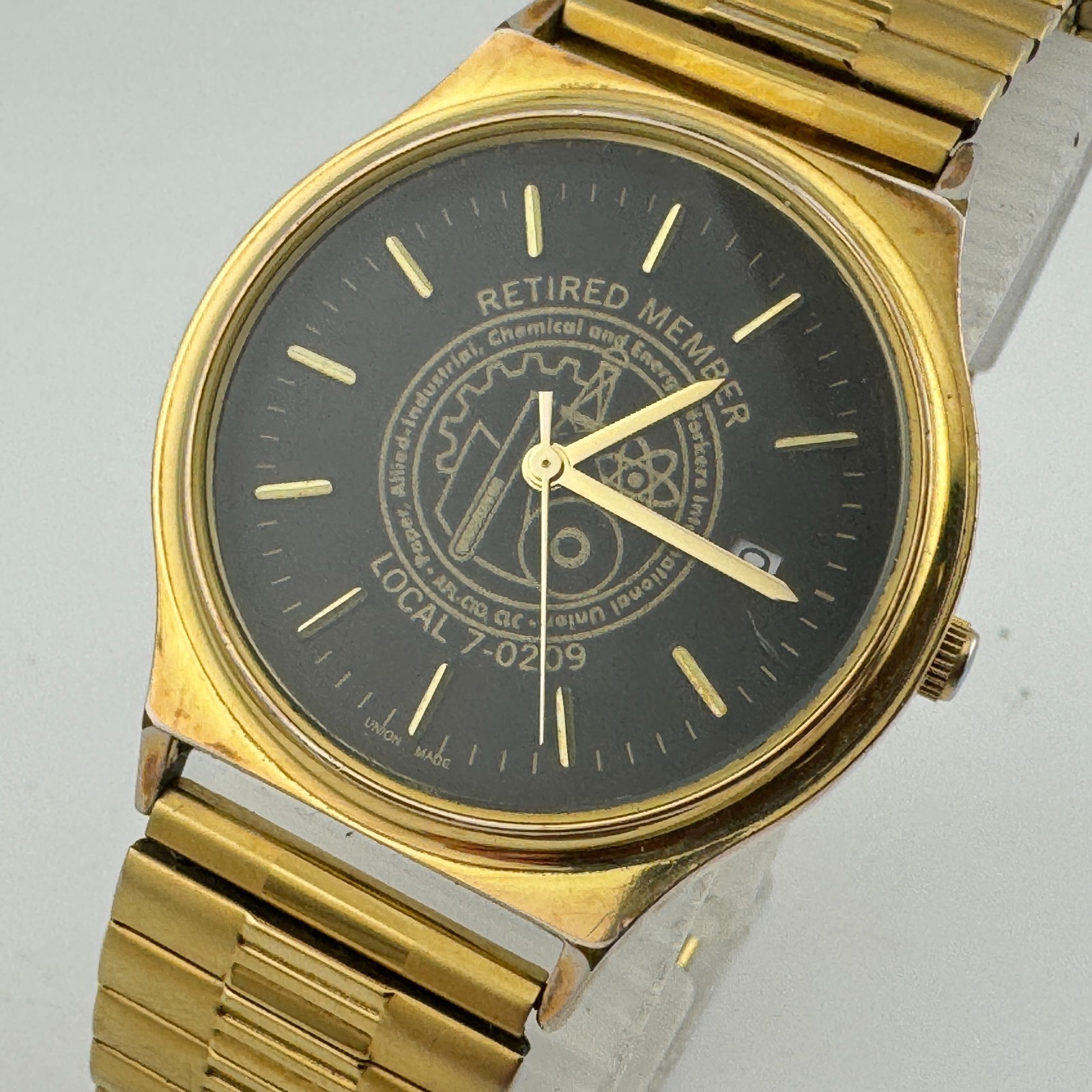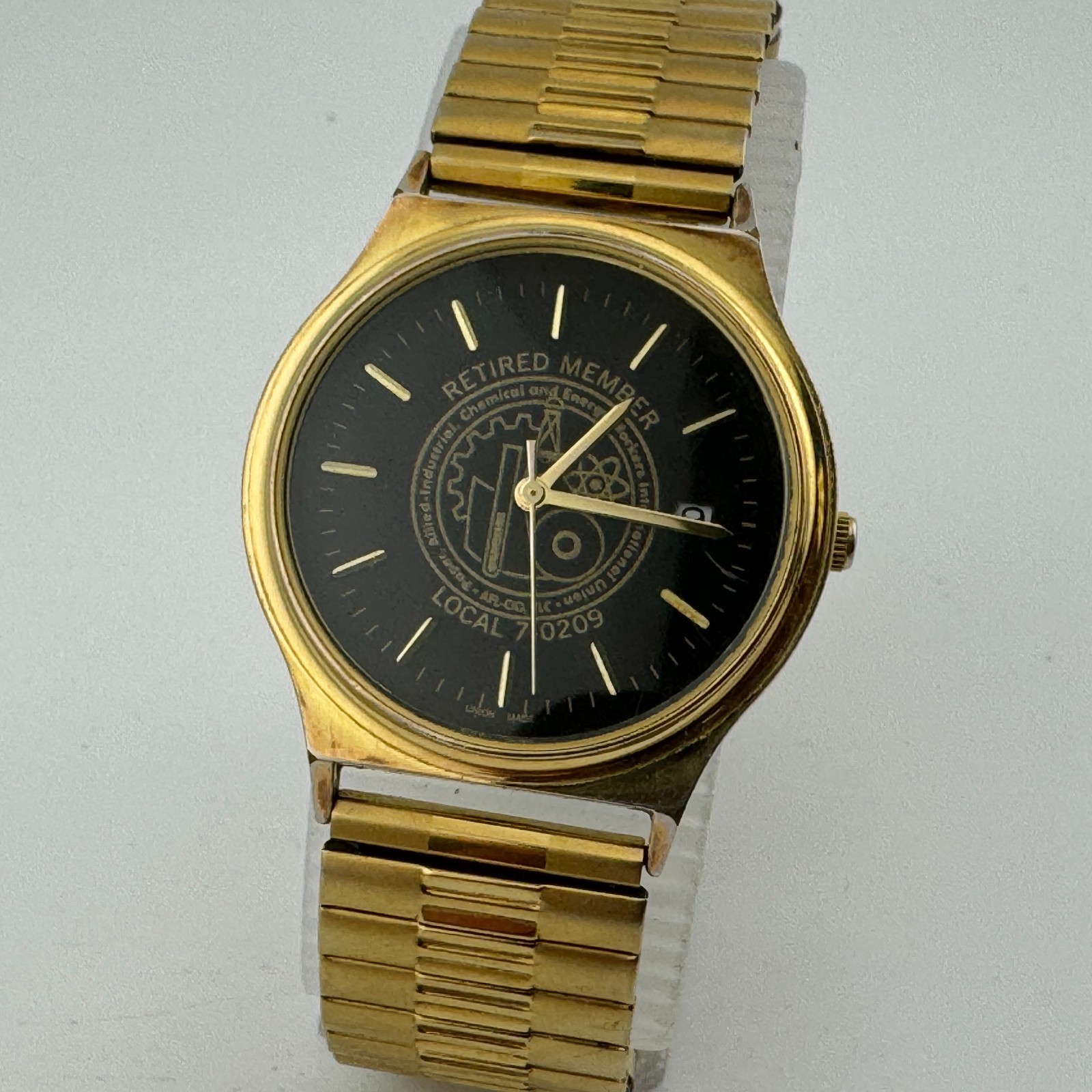Vintage American Time AFL-CIO CLC Quartz Watch Men Gold Tone Stretch New Battery