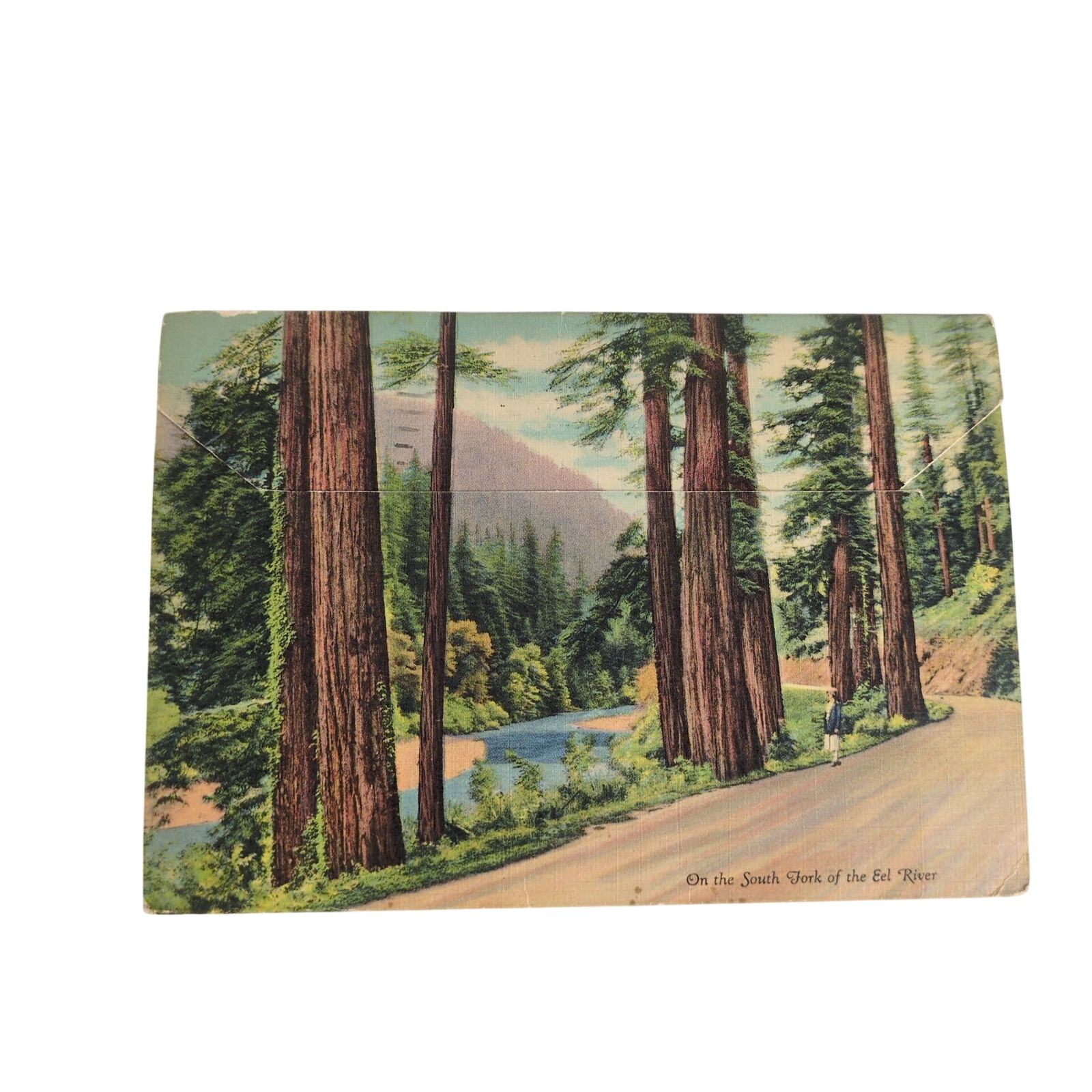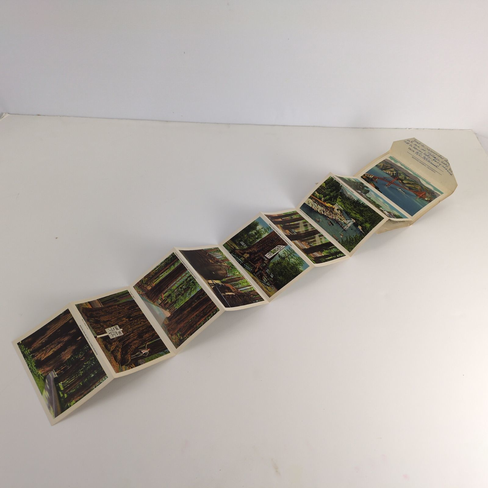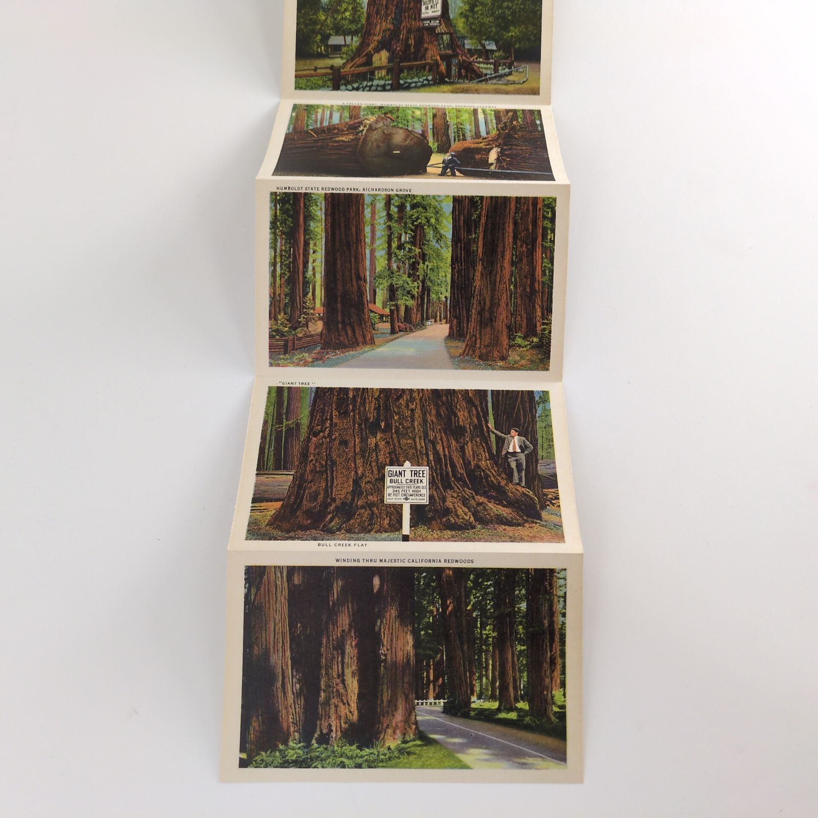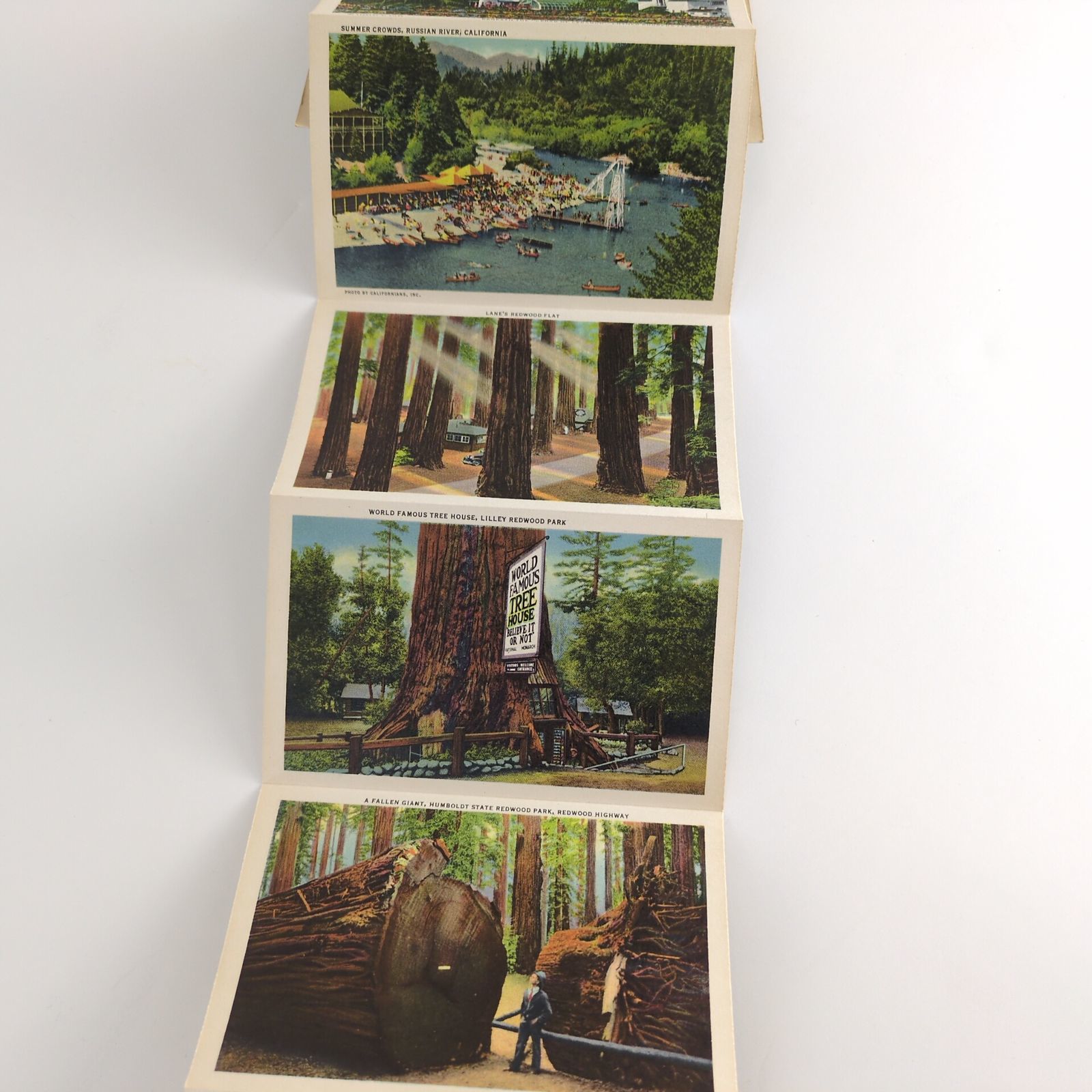 Redwood Highway California 1940s Fold-Out Linen Postcards CA Forest Souvenir