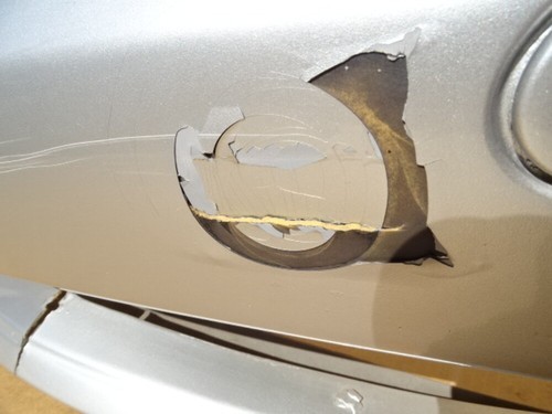 Notes: Paint color is brilliant silver. Has a crack in the center. Few cracks by the fog lamps. Has few previous repaired spots. See photos. ( #5 #6 #10 #11 #17 ).