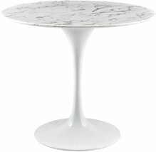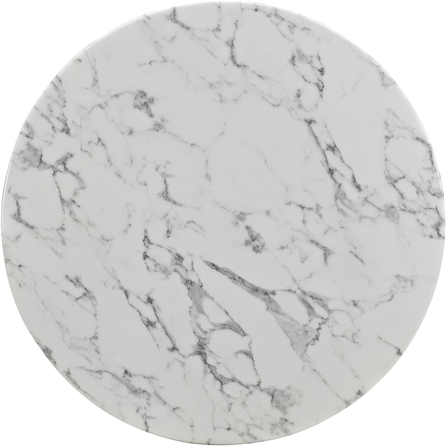 But in order to advance into the new world, homes first had to transition from the traditional square table, into a piece that connoted progress. The table?s circular artificial marble top, and tapered metal base are carefully lacquered with a scratch and chip resistant finish.