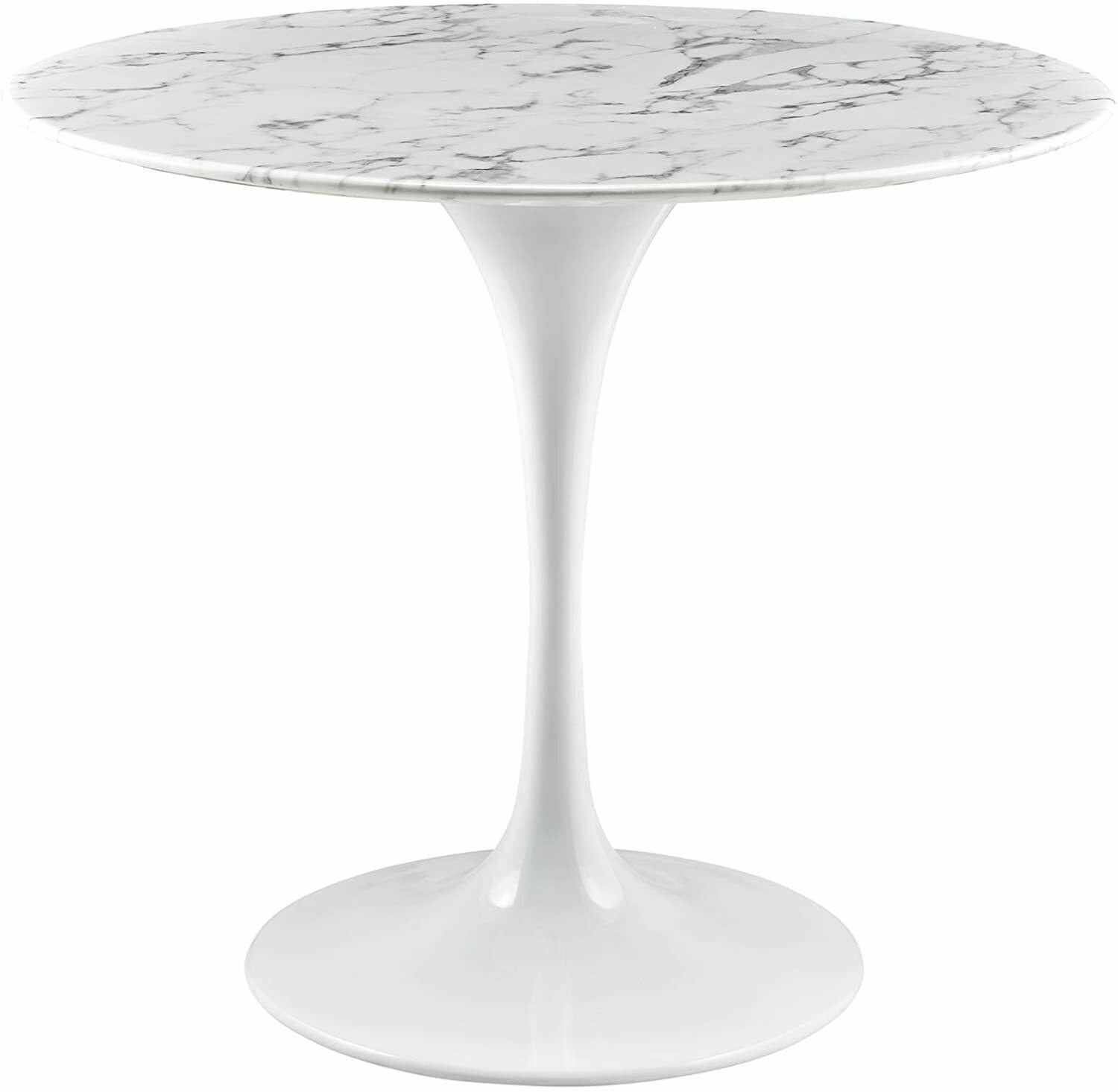 36" ROUND PEDESTAL STEMP DINING TABLE WITH WHITE FAUX MARBLE GENUINE STONE TOP AND LACQUERED BASE