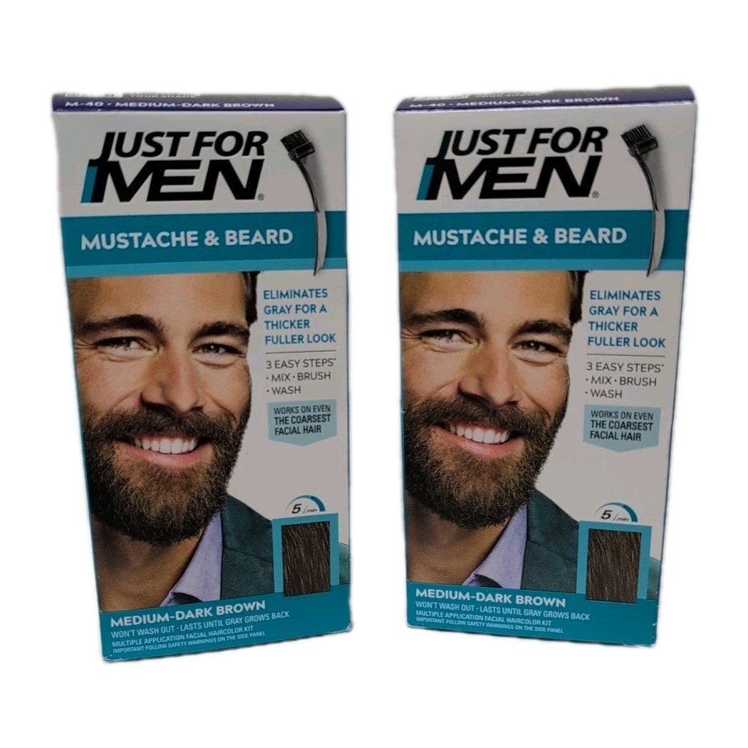 Lot of 2 Just For Men Mustache Beard Brush-In Color Kit M-40 Medium Dark Brown ? NEW Sealed