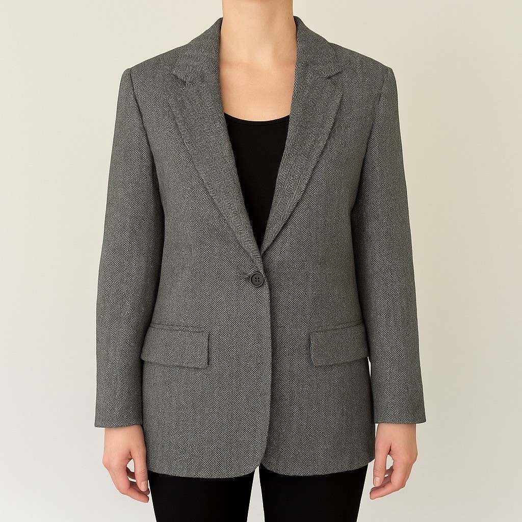 Timeless and tailored, this Jones New York Country blazer is crafted from 100% pure new wool with a full polyester lining. The classic herringbone weave and structured silhouette make it a versatile wardrobe staple, perfect for professional, business casual, or everyday polished wear.