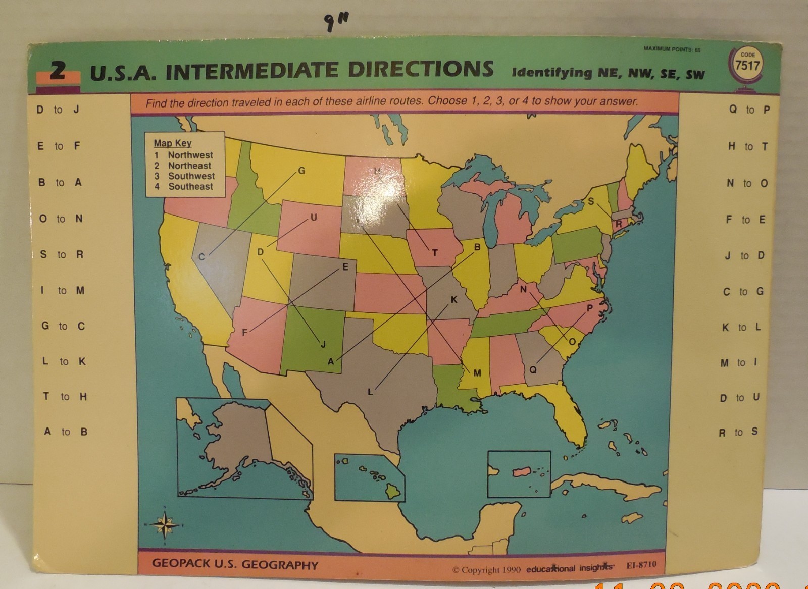 For Sale is a 1990 GeoSafari More US Geography Educational Learning System Replacement Card #1 Cardinal Directions (backside #2 Intermediate Directions). This Only For the replacement Card #1 Cardinal Directions (backside #2 Intermediate Directions) as a replacement Part. it in good Used condition as seen in the pictures provided what you see is what you will received. Please ask Any and All Questions prior to purchasing. Fast Same or Next day shipping with Free Delivery Confirmation within the U.S. Payment Due within 7 days of purchase (if you need more time please let us know In advance) we love to combine shipping is always a Yes and Most of the time Additional Items Ship for free.