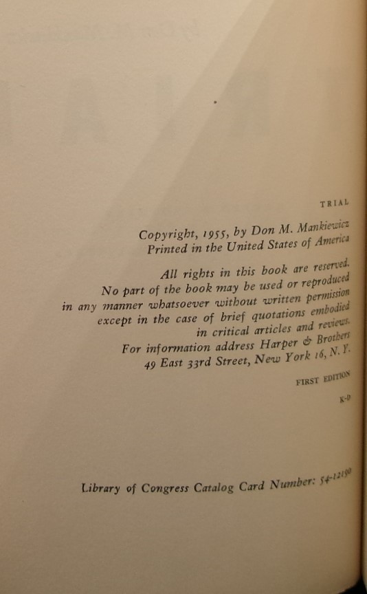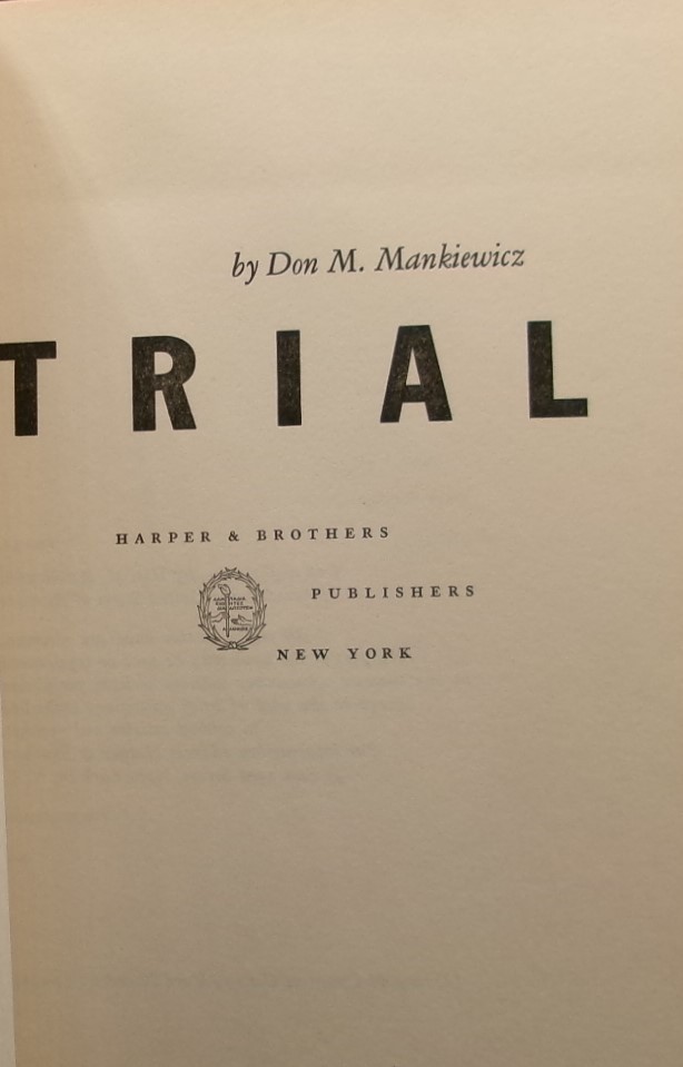 Don M. Mankiewicz TRAIL First edition 1955 Harper Prize Novel Ltd. Signed Filmed