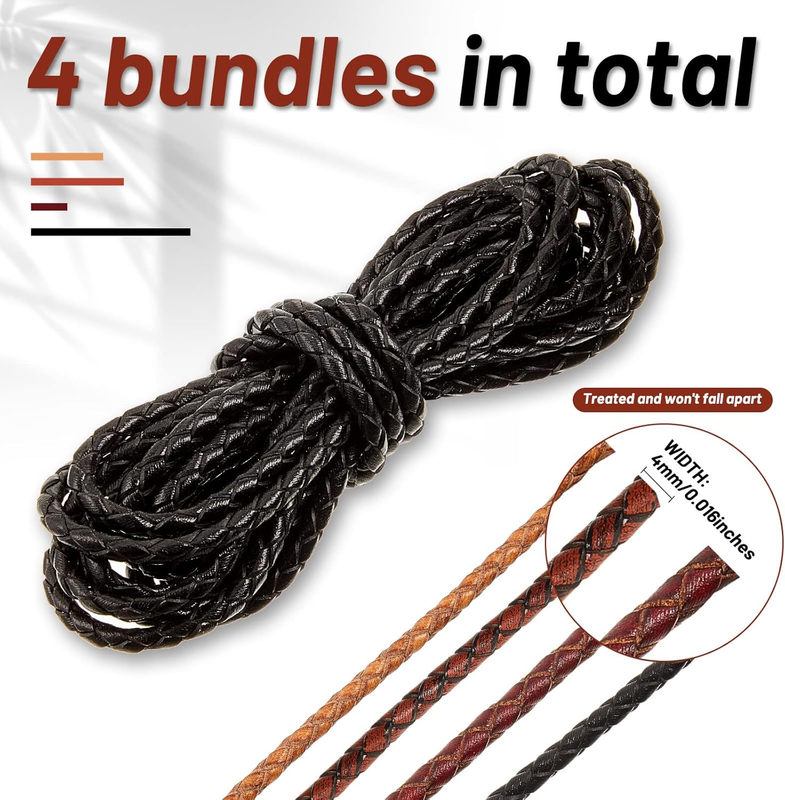 Long Enough to Use: each leather braid cord measures approx. 2 yards/ 1.8 m in length and 4 mm/ 0.16 inch in diameter, 8 yards in total, appropriate in size and light in weight, sufficient length for you to make handmade crafts, and you can easily trim it into different lengths