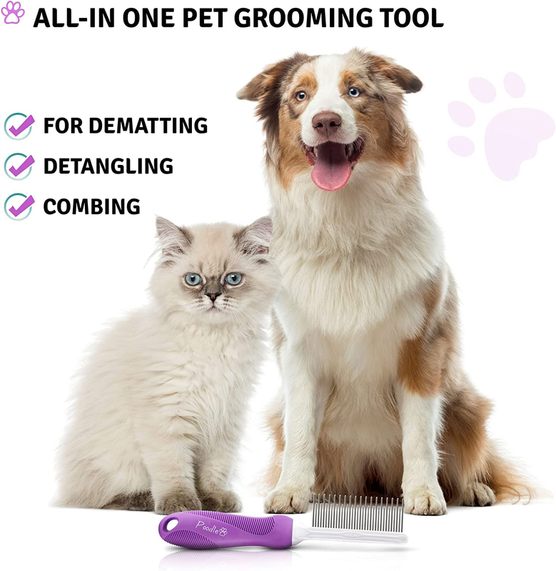 Poodle Pet Detangling Pet Comb with Long & Short Stainless Steel Teeth for Remov