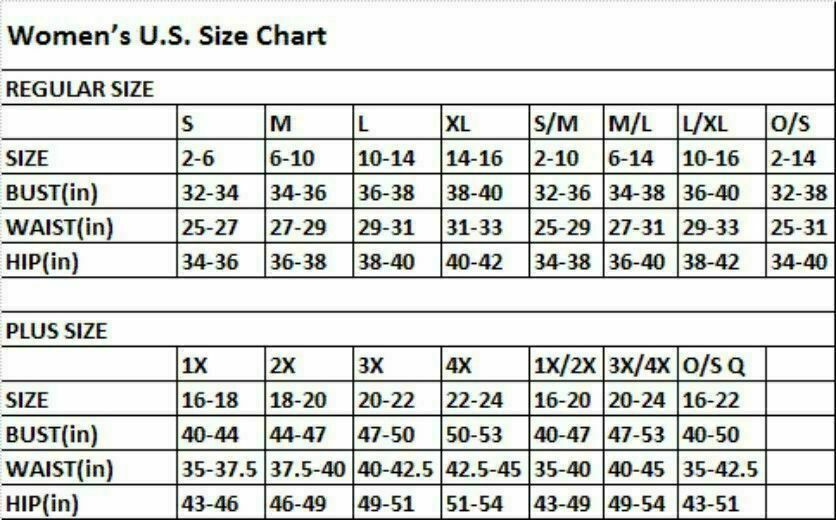 One Size. Size: 2-14. Cup: B/C. Bust: 32"-38". Waist: 24"-32". Hip: 34"-40". Weight: 90-160lbs. From Escante.