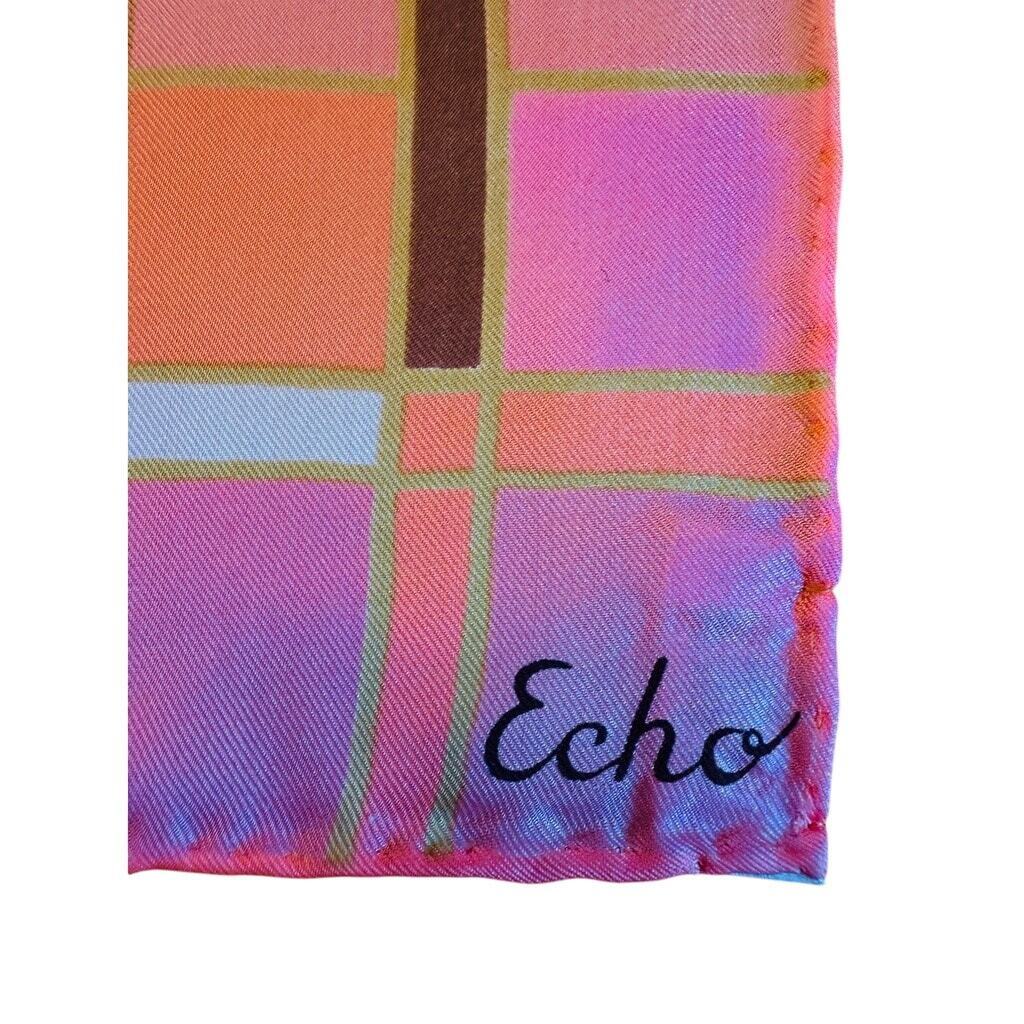 VTG 60s ECHO Mod Silk Scarf Pinks Apricot Brown Gold Block Print 44x30 Rectangle