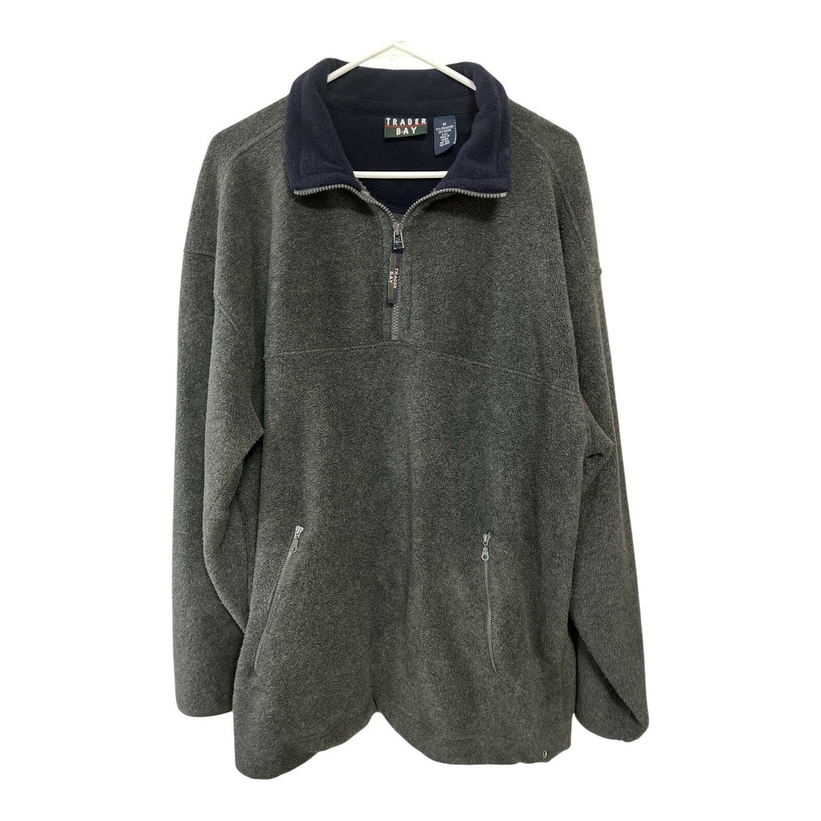 Lot of 2 Vintage Trader Bay Men?s Fleece Pullovers ? Navy Gray Half-Zip