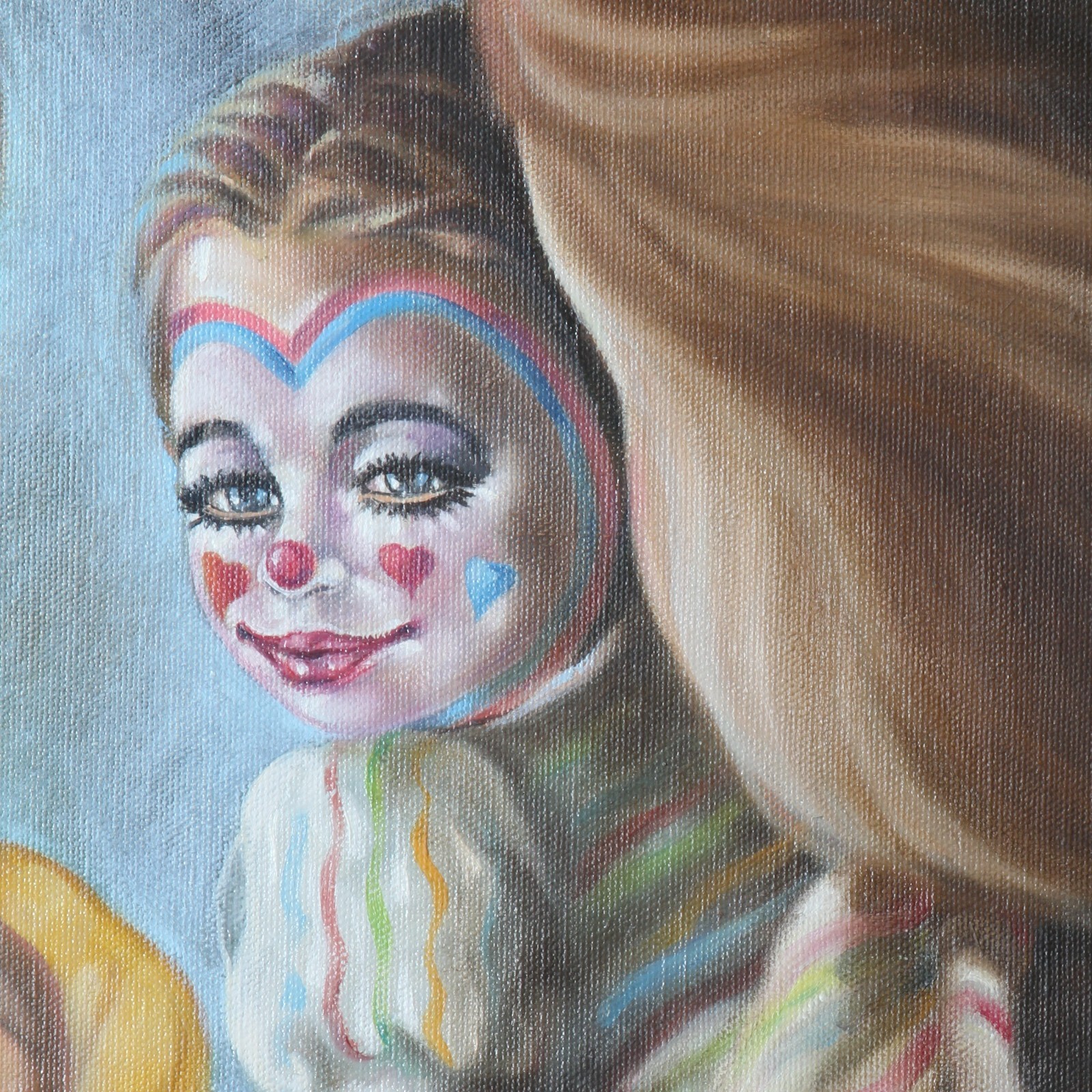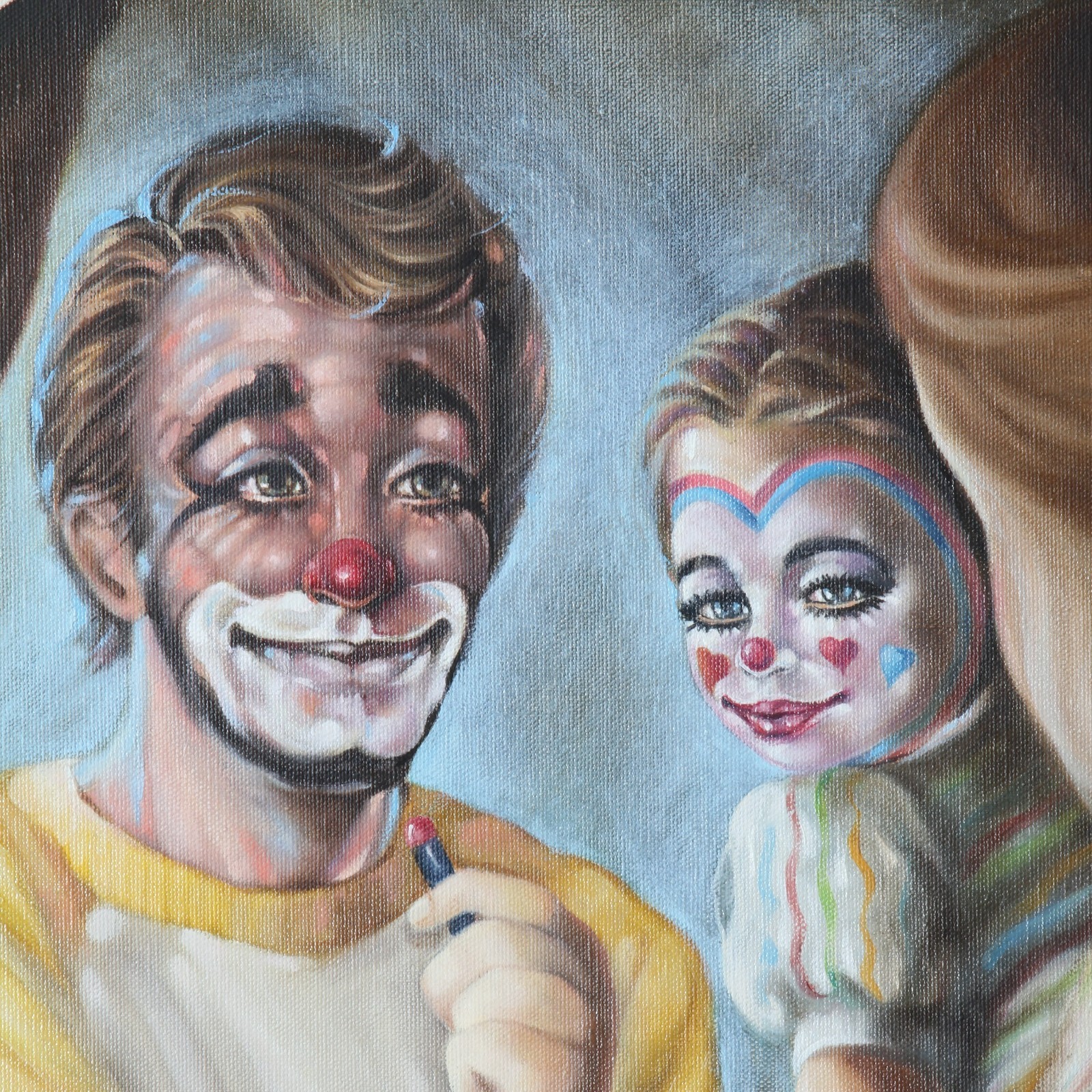 Untitled (Father and Daughter applying Clown Makeup) Oil Painting by Anthony Sidoni