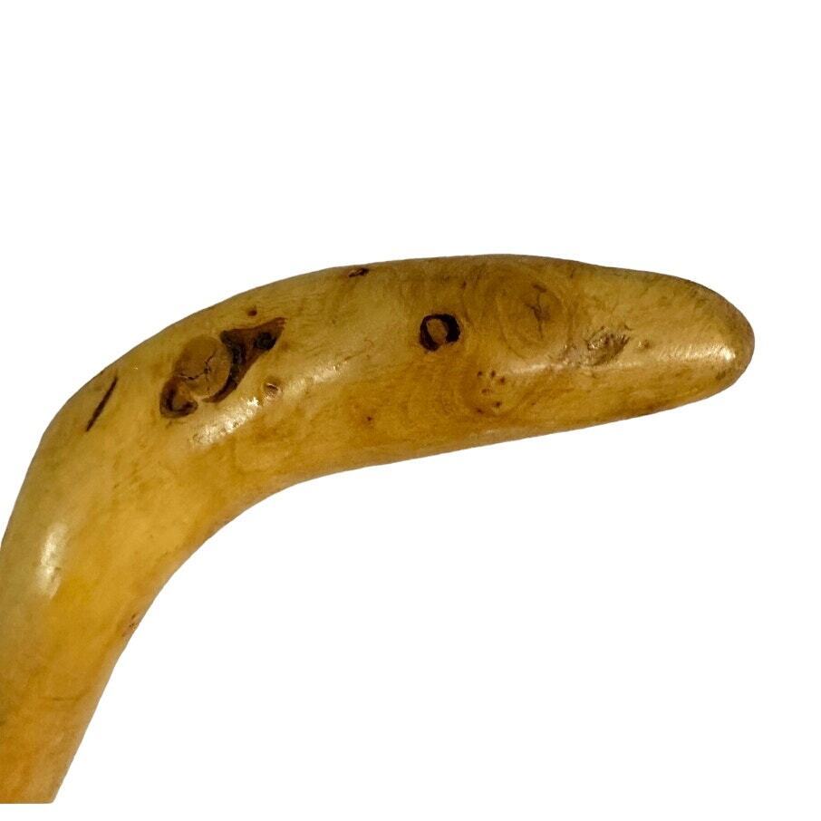1800's antique handmade root wood Folk Art natural walking stick cane Snake LG- 31" long. the top looks a bit snake lik3e has a copper bottom wrap or tip.