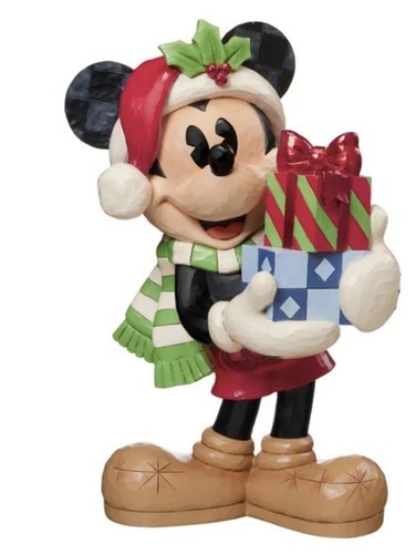 Celebrate the magic of the season with this stunning design, featuring everyone?s favorite character holding festively wrapped presents. Dressed in a classic holiday outfit, Mickey shines with charm and joy. Jim Shore?s signature craftsmanship and vibrant details make this a heartwarming addition to any Disney holiday collection