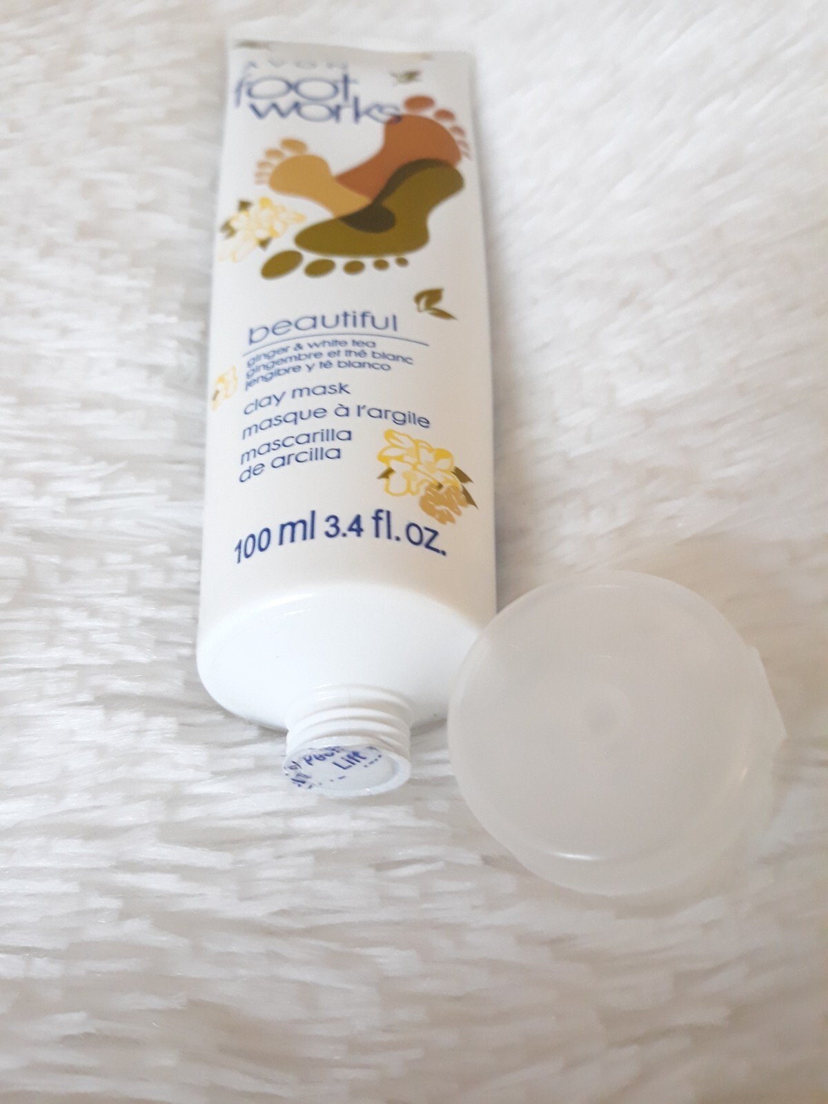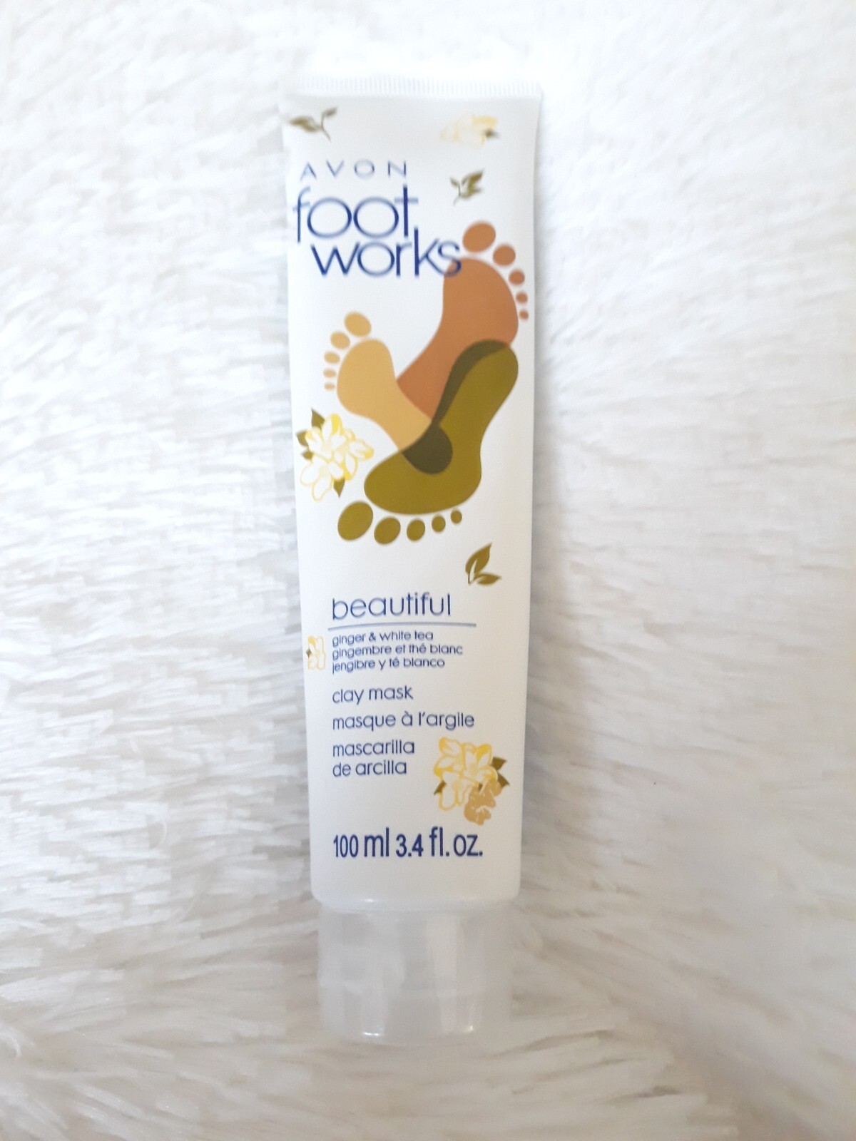 AVON FOOT WORKS "BEAUTIFUL GINGER WHITE TEA CLAY MASK" (3.4 fl oz) ~ SEALED!!!