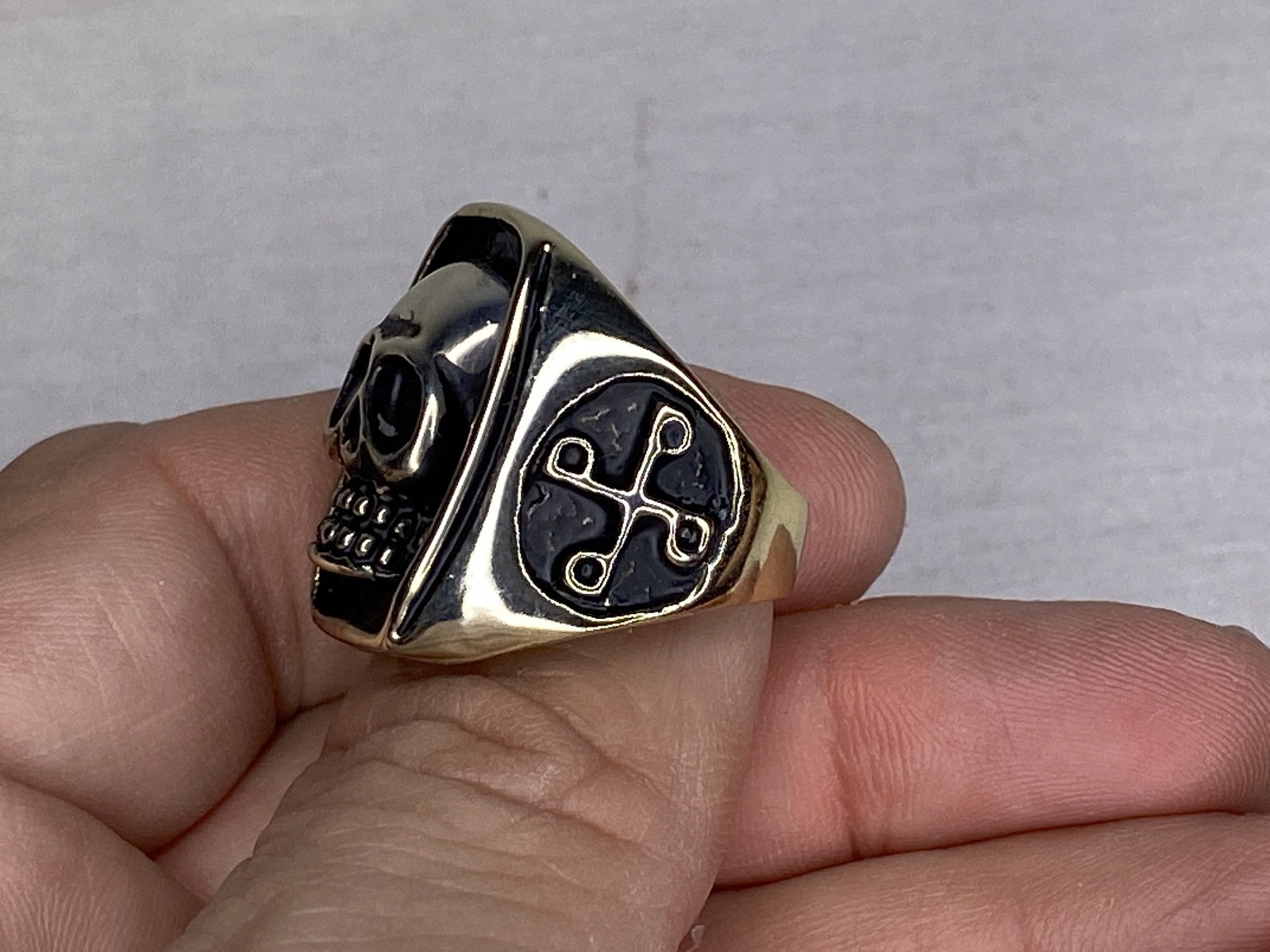 A Signature of the Phantom is his two Rings. One has a pattern formed like Four Crossing Sabres, The Good Mark, that he leaves on visitors whom he befriends, placing the person under his protection. The other, The Evil Mark or Skull Mark has a Skull Shape, which leaves a Scar of the corresponding shape on the enemies he punches with it. He wears the Good Mark on his left hand because it is closer to the heart, and the Evil Mark on his right hand. The Skull Ring was given to the first Phantom by Paracelsus. The original owner of the Skull Ring was Emperor Nero of the Roman Empire and it would later be revealed that the Ring had been made from the Nails that Romans used in the Crucifixion of Christ. The Good Mark Ring was made after the sixth Phantom founded the Jungle Patrol.
