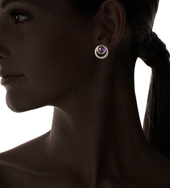 Blossom Box 1.9cm Placcato Oro 10mm Ametista Viola Crystal Orecchini a Lobo