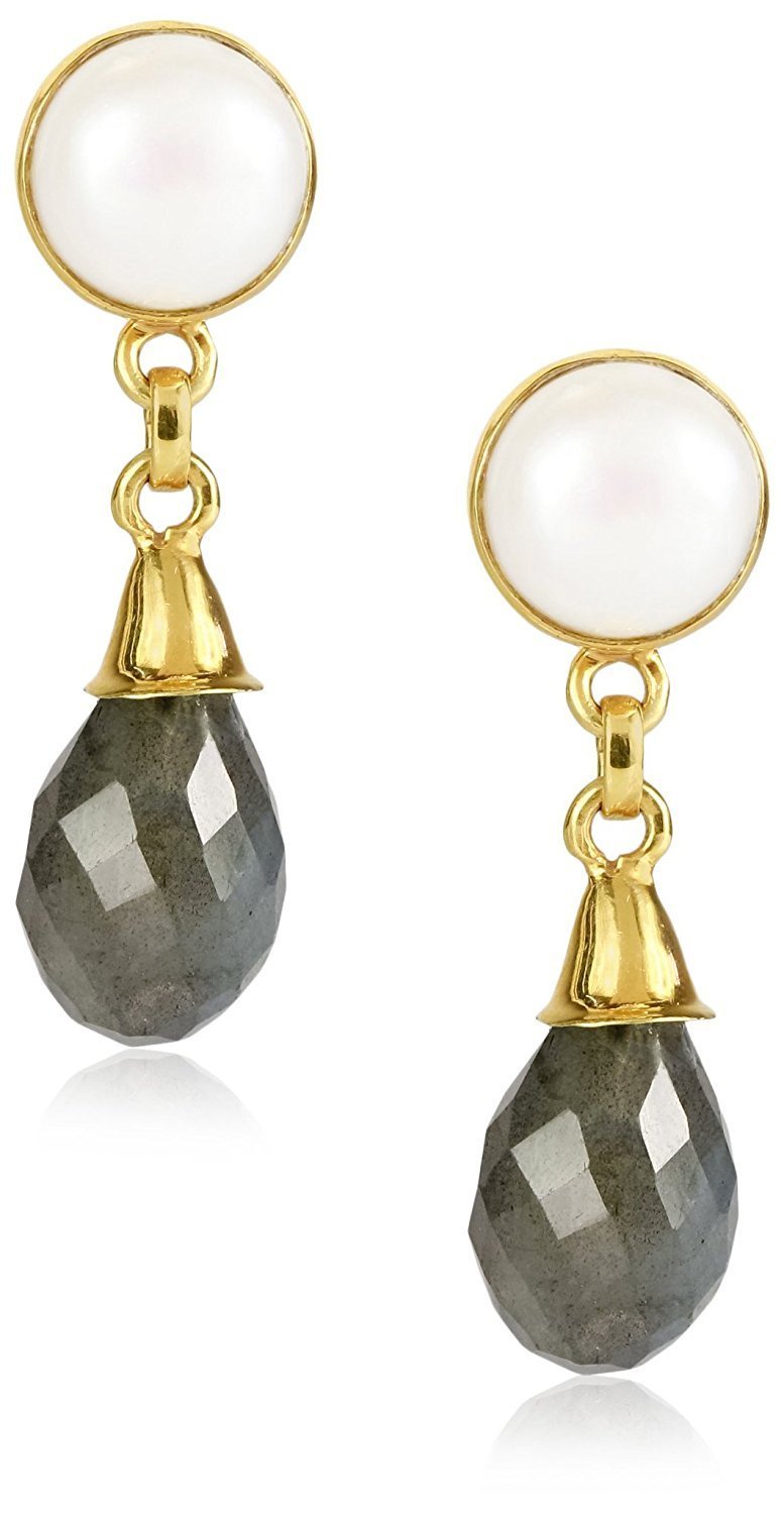 Saachi Color Oro Perla Coltivata IN Acqua Dolce & Labradorite Orecchini a Goccia