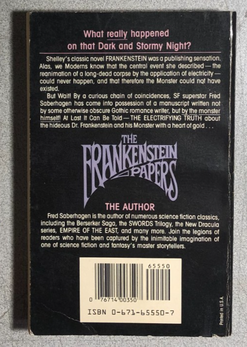 THE FRANKENSTEIN PAPERS by Fred Saberhagen (1986) Baen horror paperback 1st