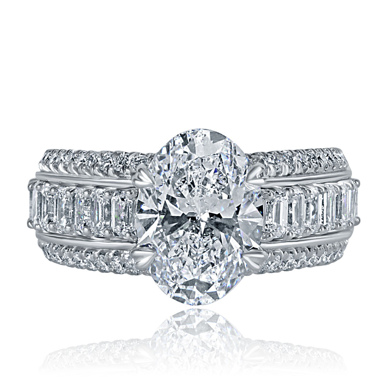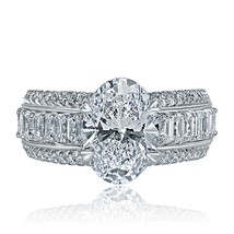 Bague En Diamant Lab Grown Oval Brilliant Cut 3,29 TCW (3,09 CT) En Or Blanc 14k
