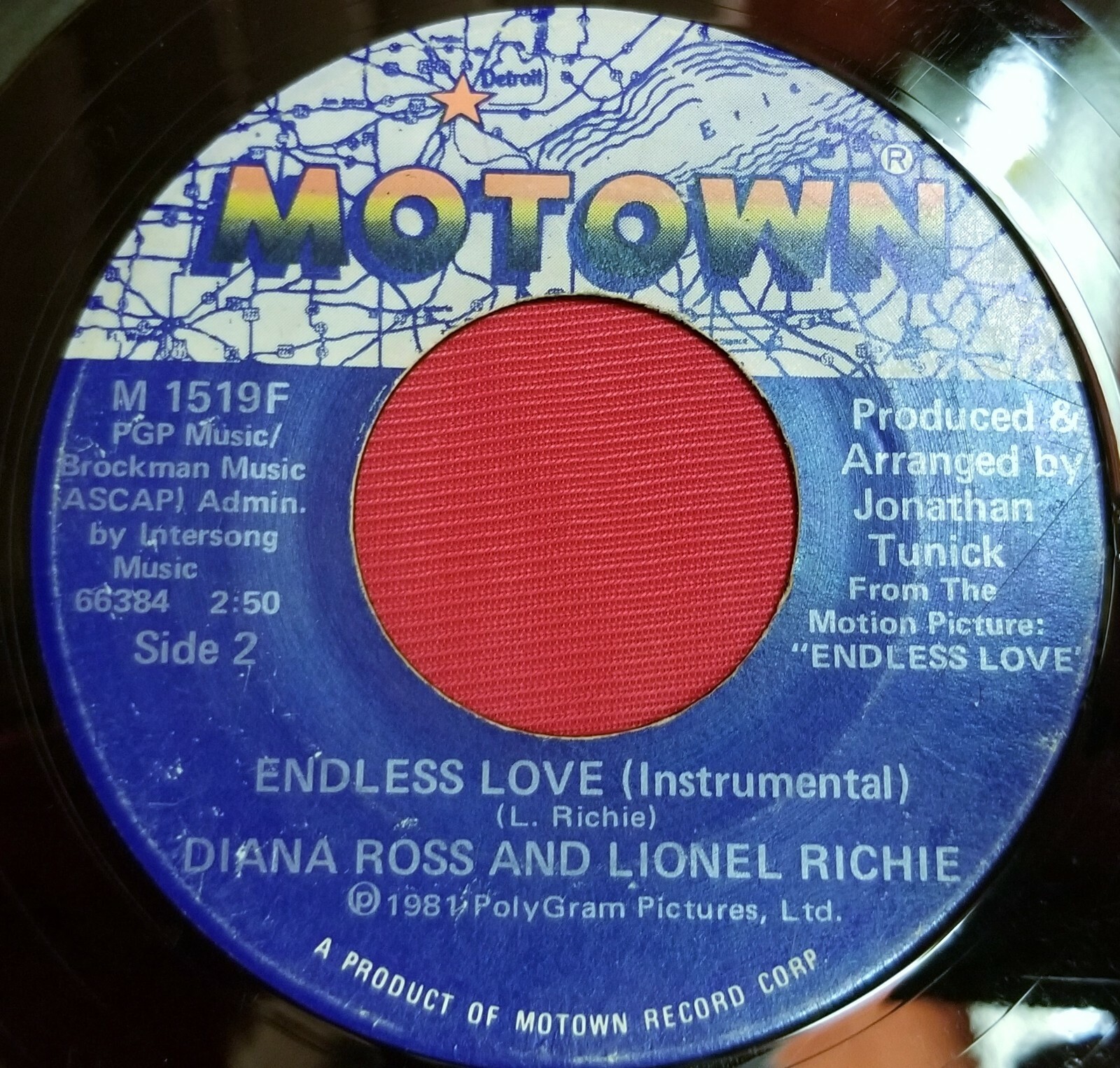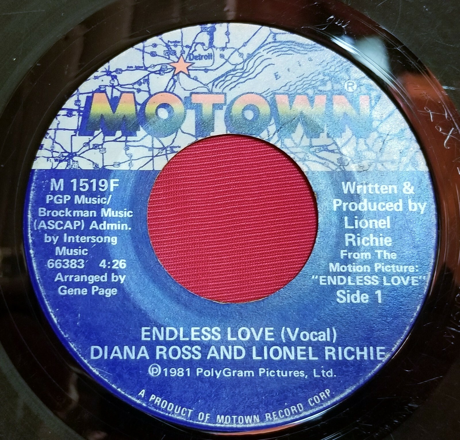 Diana Ross and Lionel Richie - Endless Love - Motown - 45 RPM Vinyl Record