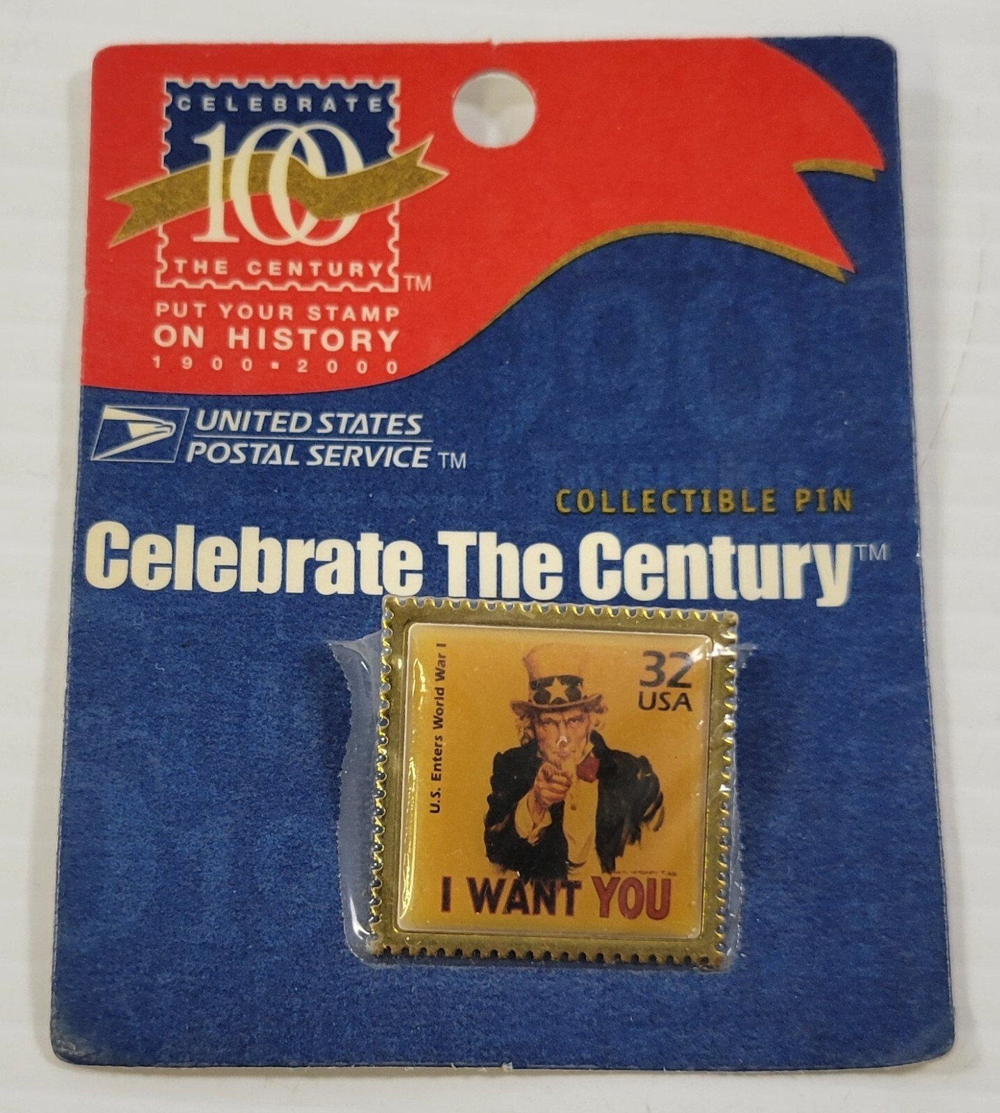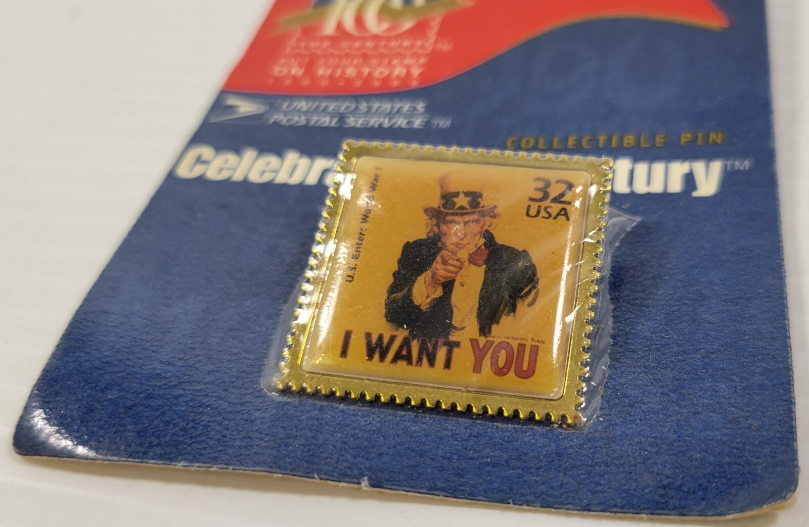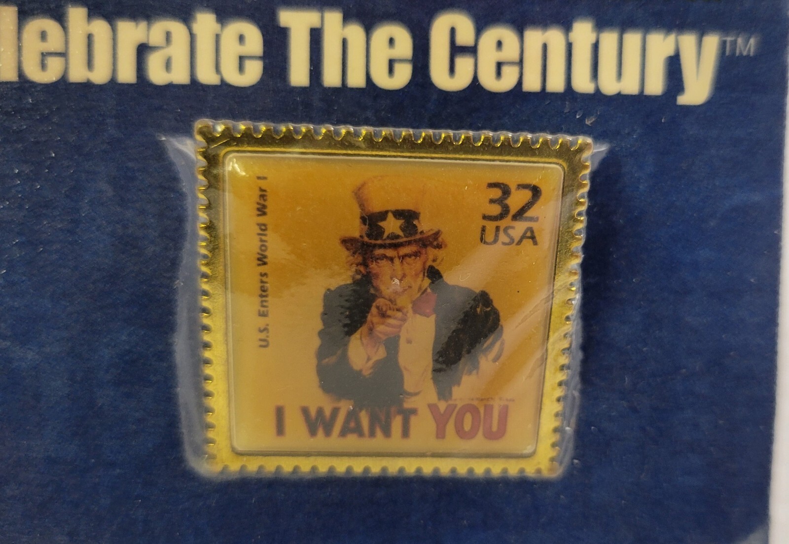 *B9) Vintage 1998 USPS Celebrate the Century Collectible Stamp Pin Uncle Sam WWI