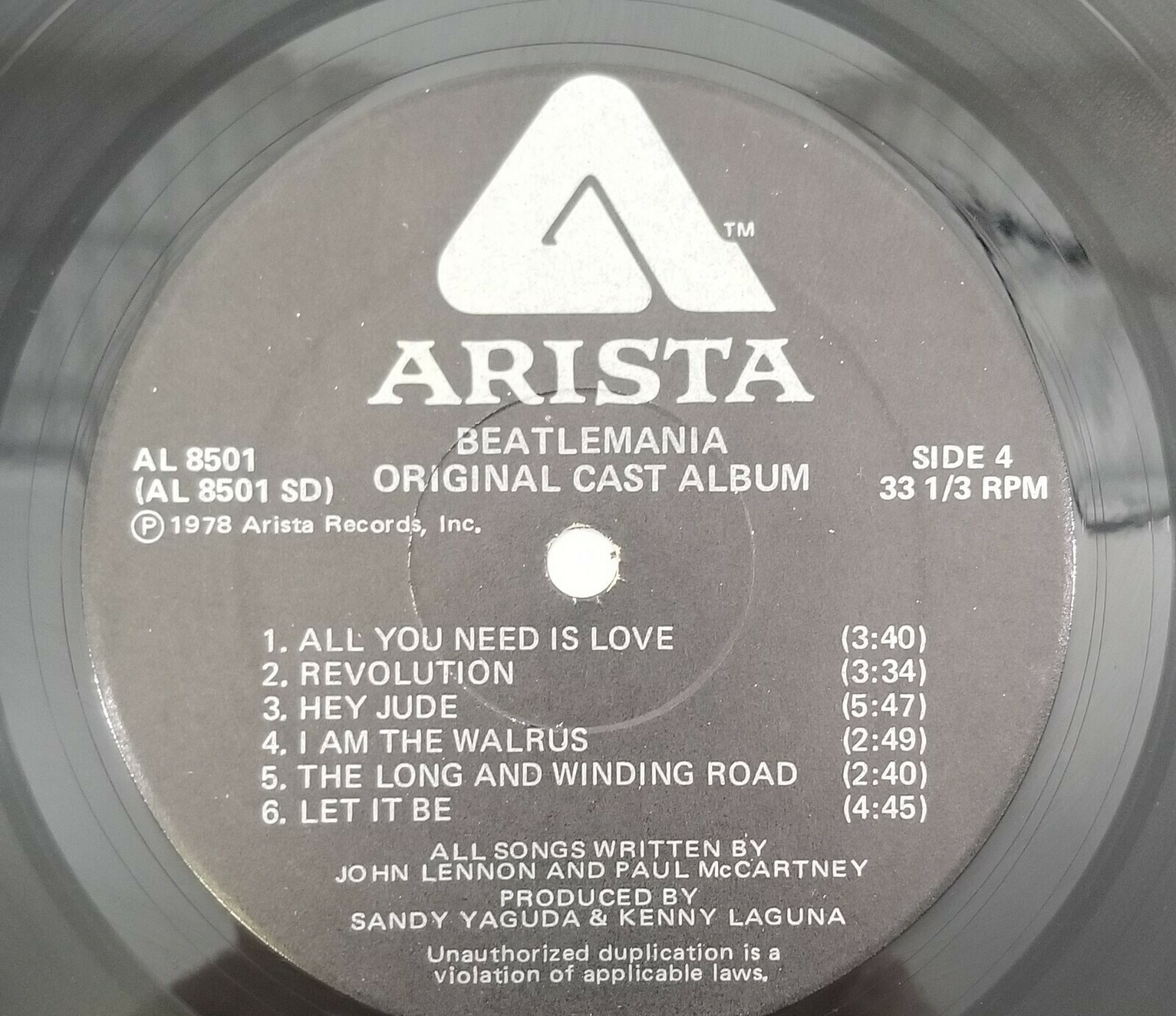 V) Beatlemania Original Cast Album - Record #2 - Arista - Vinyl Music Record