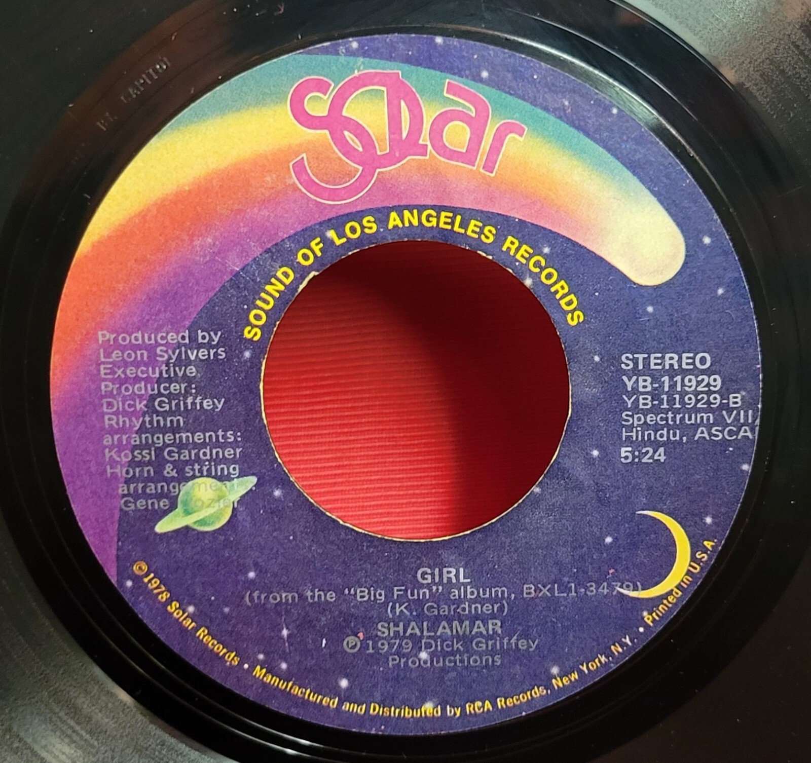 Shalamar - Right in the Socket - Girl - 1978 Solar - 45 RPM - Vinyl Record