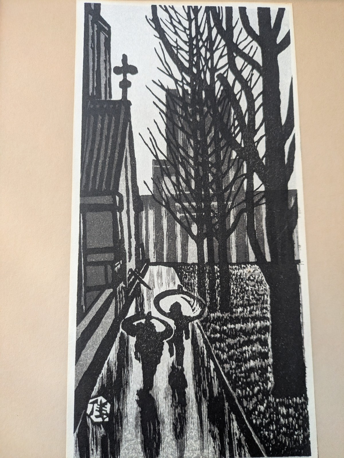 Gihachiro Okuyama Rainy Day Black White Japanese Woodblock Print People