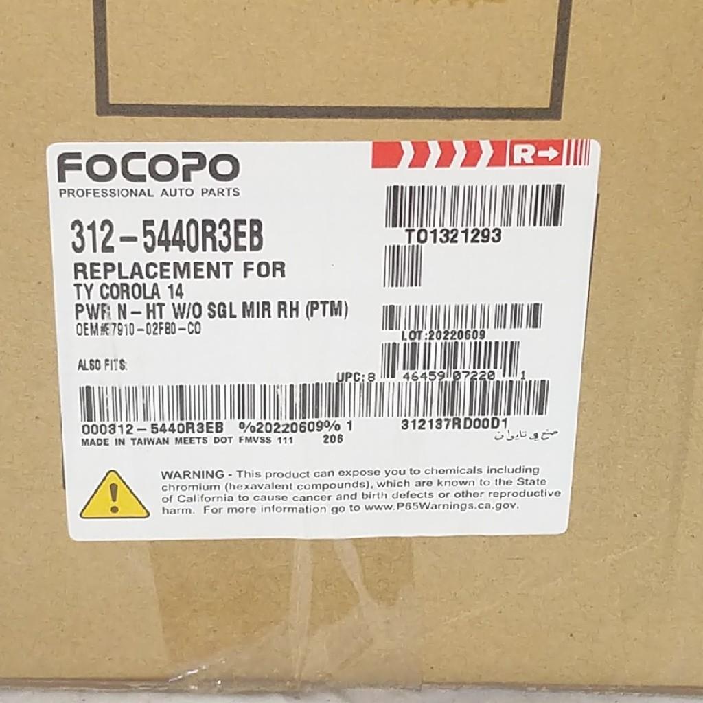 FOCOPO 312-5440R3EB Fits 14 Toyota Corolla Passenger Paint To Match Power Mirror