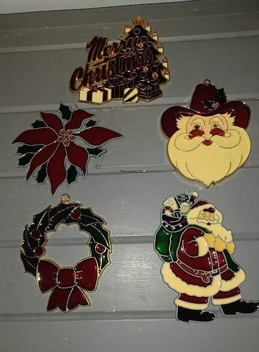 Lot of 5 Stained Glass Christmas Ornament Wall Decor Sun Catcher Cowboy Santa