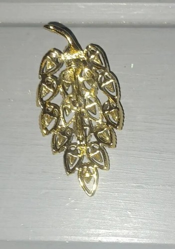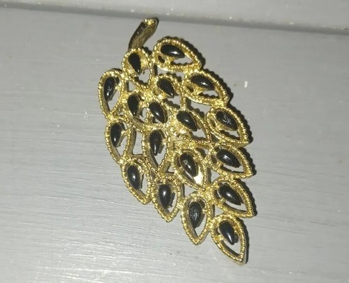 Vintage Gerry's Goldtone Black Enamel Stylized Leaf Brooch