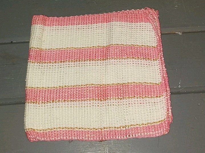 Vintage Lot of 4 Loose Weave Striped All Cotton Dish Rags Washcloths - Unused 12x14"
