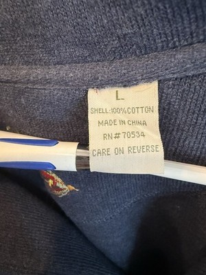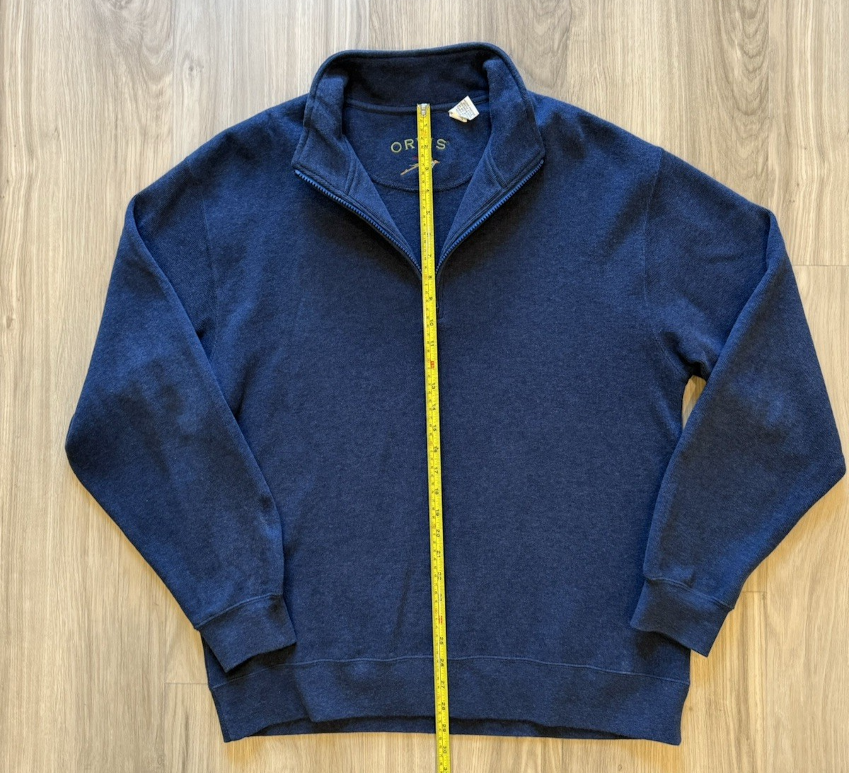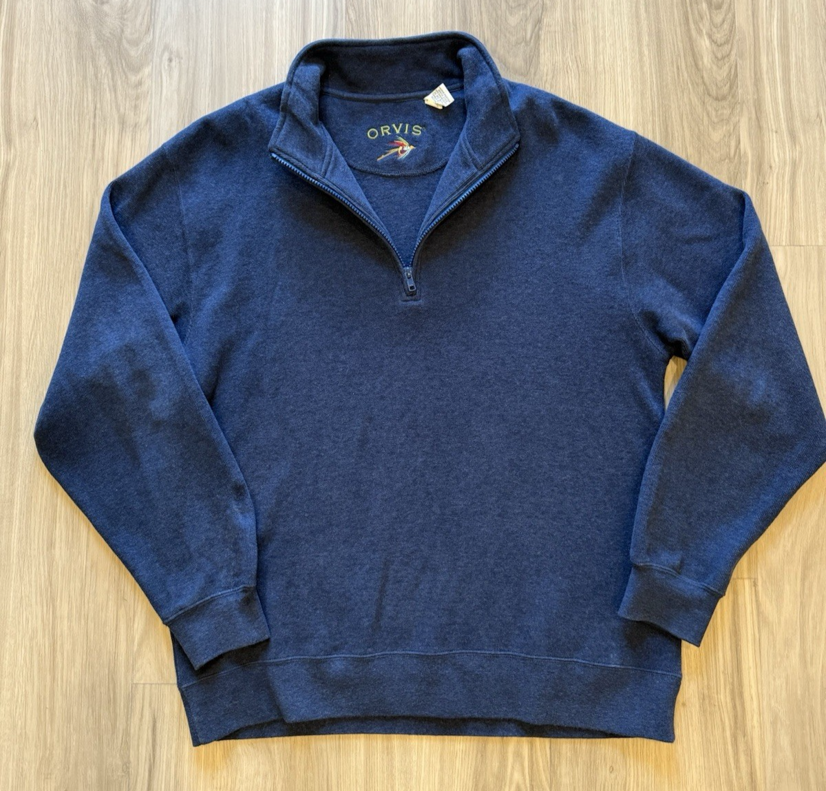 Orvis Men's Large Navy Blue 1/4 Zip 100% Cotton Pullover Sweater EUC Read Desc