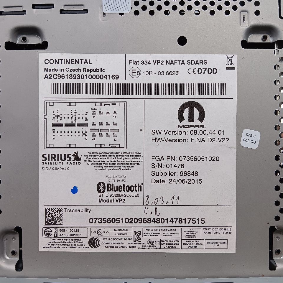 Audio Equipment Radio Display 4 Door X Model AM-FM Uconnect Fits 16-17 FIAT 500
