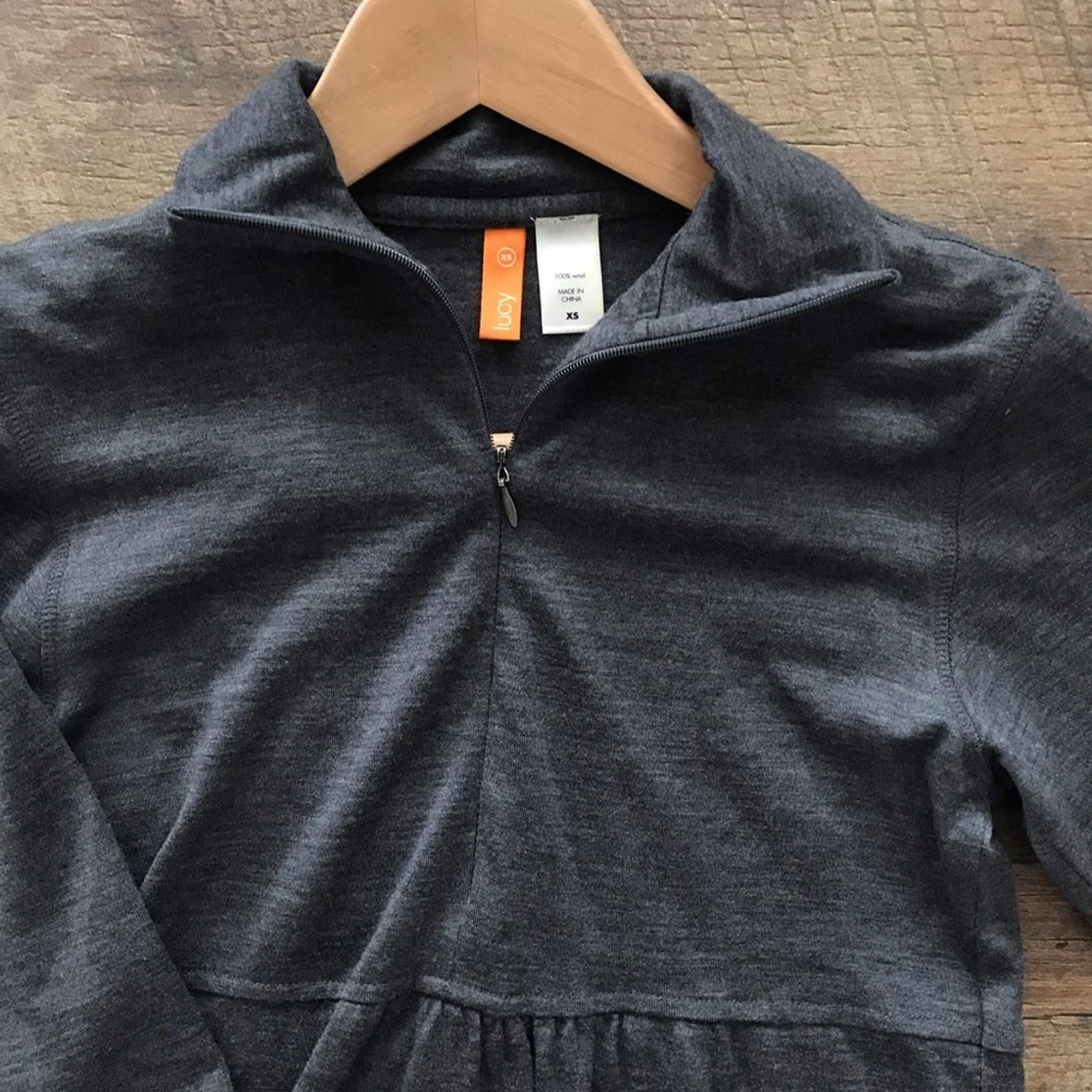 Lucy Quarter Zip Wool Knit Athleisure Dress Gray XS