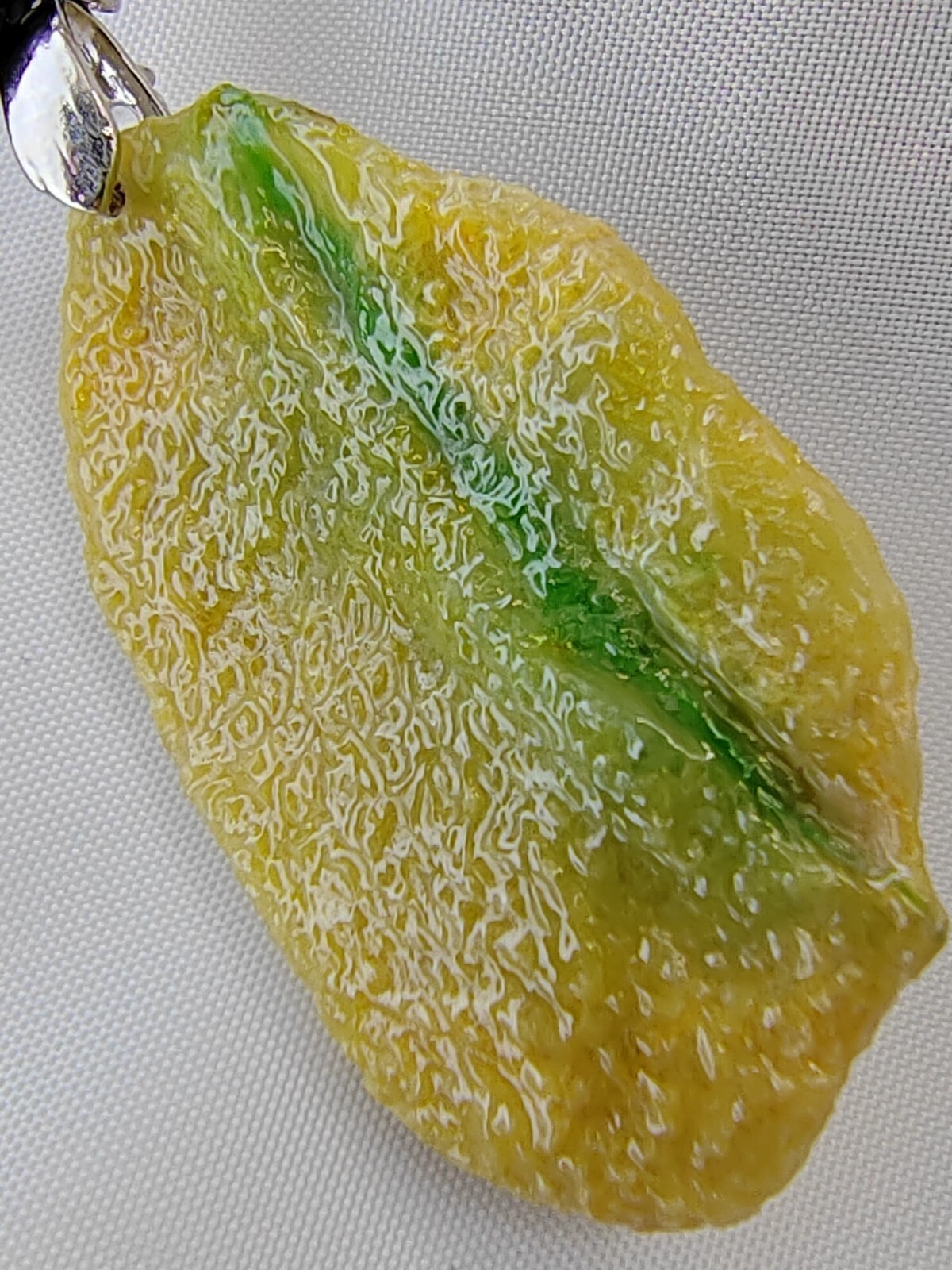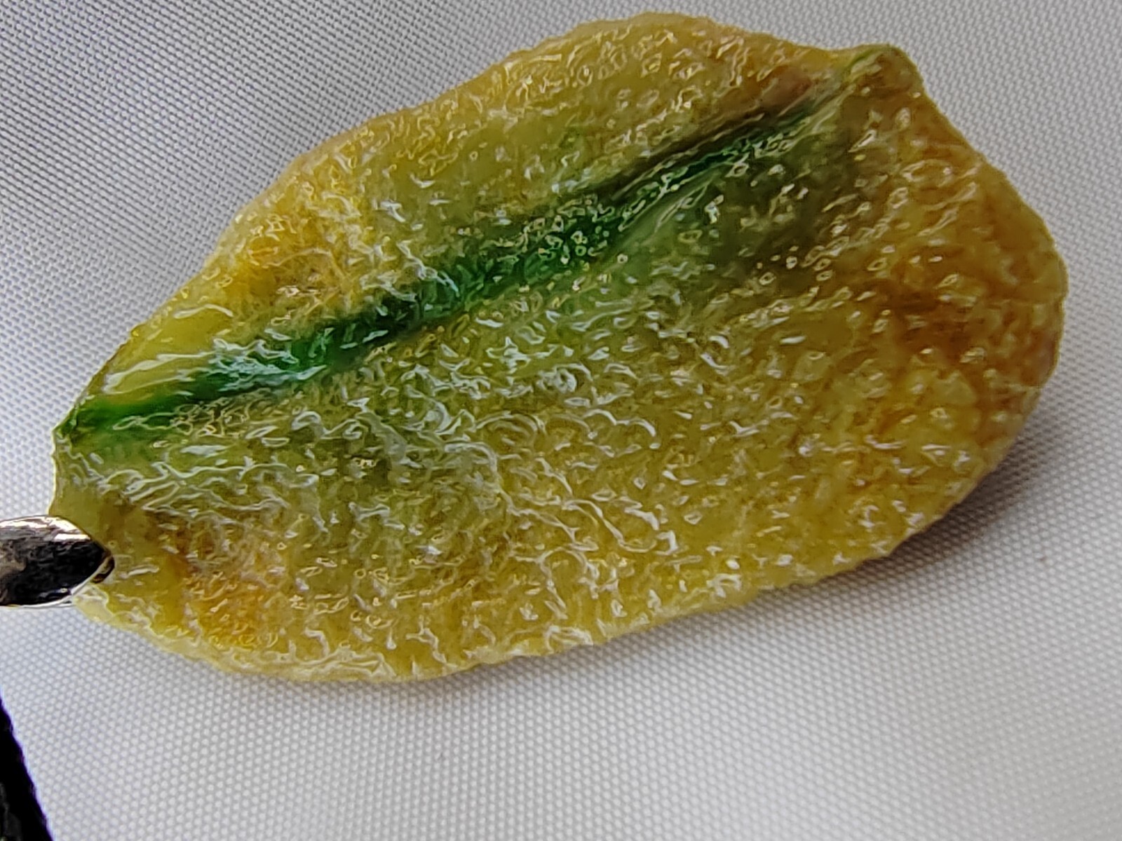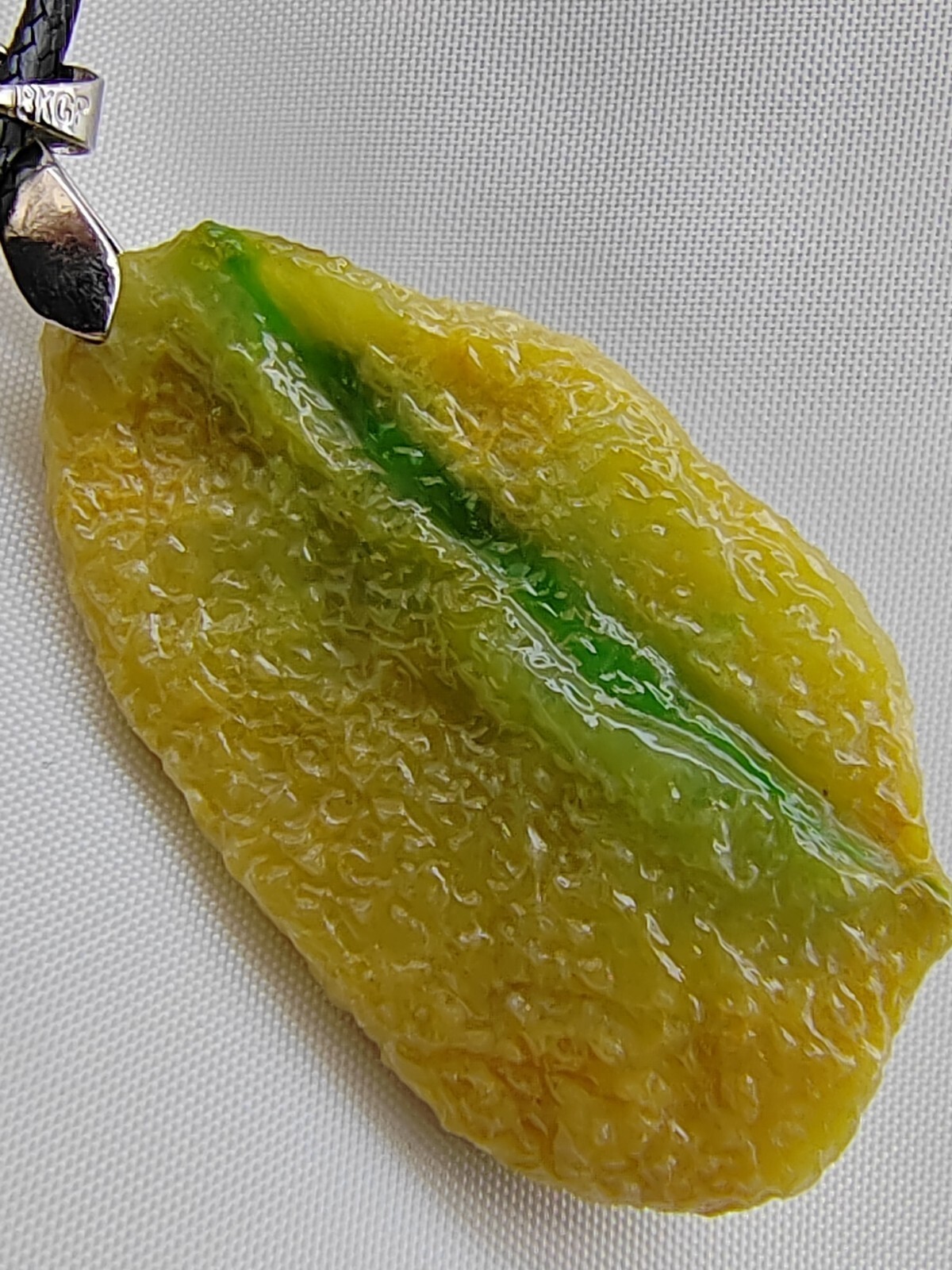 This is an exceptionally rare natural jadeite pendant, classified as a yellow-green jadeite variety. Its shape is natural and uncarved, with the polished surface revealing its inherent beauty. The jadeite has a fine texture and excellent luster, enhanced by its unique yellow-green color. Yellow-green jadeite is extremely rare in the market, highly sought after by collectors for its extraordinary formation conditions, making it a prized possession. The dimensions of this pendant are approximately 40.30 mm in length, 22.60 mm in width, and 11.70 mm in thickness, with a weight of 15.20 grams, equivalent to 76 carats. Such a high-quality jadeite pendant not only boasts significant artistic and collectible value but is also cherished for its rarity. The pendant comes with an A-grade jadeite certificate, ensuring it is natural and untreated, giving collectors additional confidence. Jadeite, known as the "King of Gems," has always held a prestigious position in the jewelry world due to its unique texture and color. In Chinese culture, yellow-green jadeite symbolizes wealth and good fortune; yellow represents wealth, and green signifies vitality and peace. The combination of these colors further symbolizes a beautiful life. This meaning transforms the pendant from merely a decorative item into an art piece filled with blessings. Overall, this natural yellow-green jadeite pendant showcases not only the natural beauty and exquisite craftsmanship of jadeite but also embodies deep cultural connotations. Its rare material and unparalleled aesthetic value make it a treasure in the jewelry collection world. This pendant is not just a symbol of the wearer's status and taste but also an heirloom worth preserving for generations.