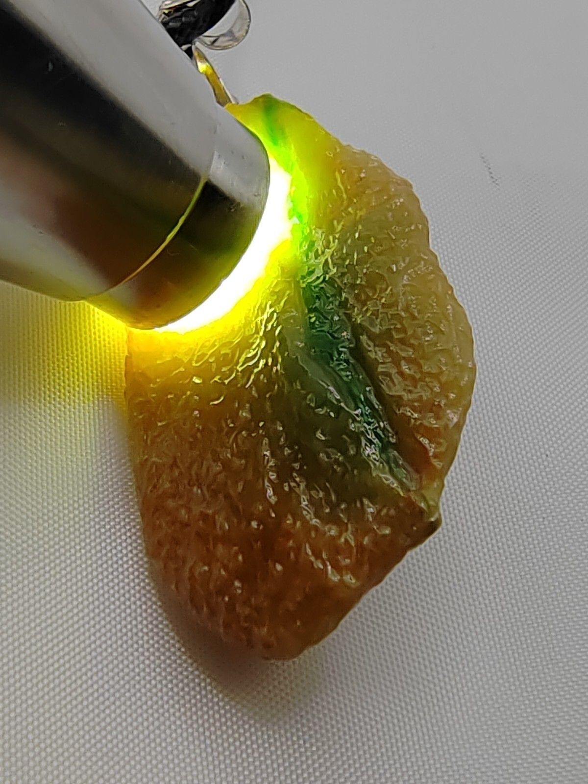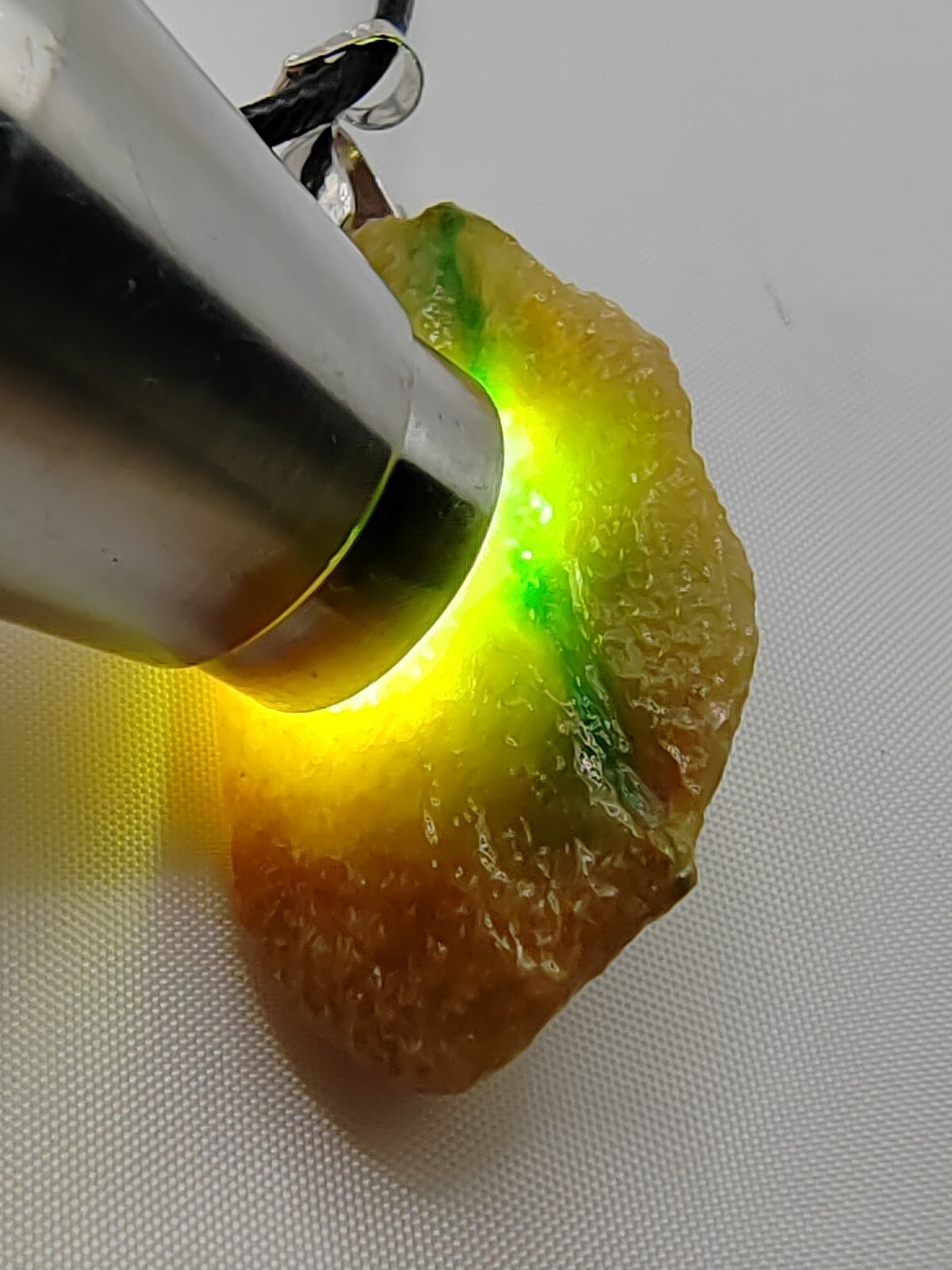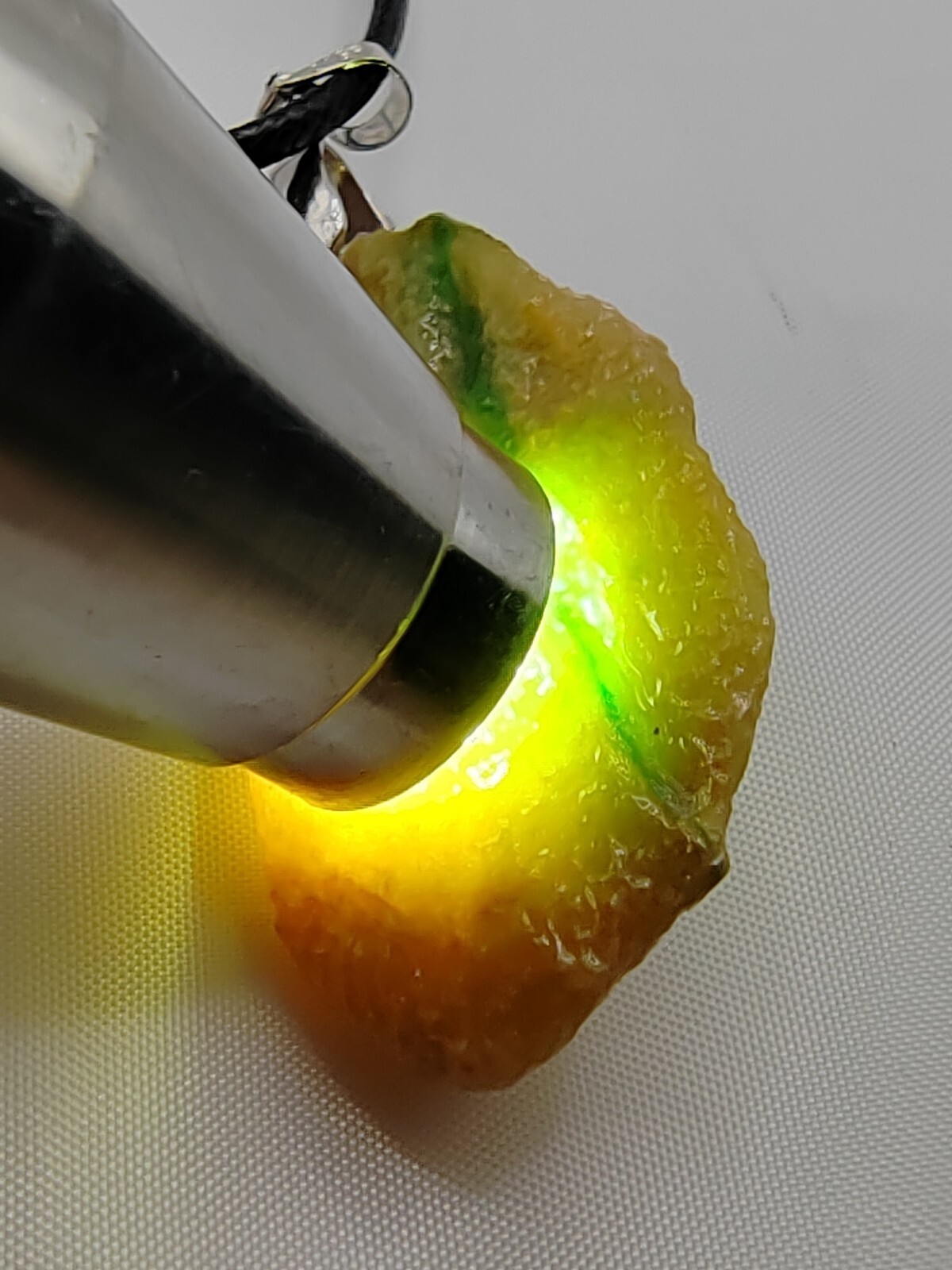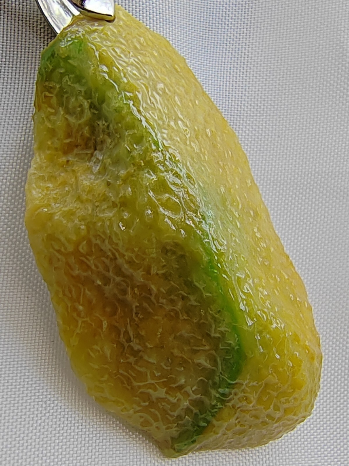 This is an exceptionally rare natural jadeite pendant, classified as a yellow-green jadeite variety. Its shape is natural and uncarved, with the polished surface revealing its inherent beauty. The jadeite has a fine texture and excellent luster, enhanced by its unique yellow-green color. Yellow-green jadeite is extremely rare in the market, highly sought after by collectors for its extraordinary formation conditions, making it a prized possession. The dimensions of this pendant are approximately 40.30 mm in length, 22.60 mm in width, and 11.70 mm in thickness, with a weight of 15.20 grams, equivalent to 76 carats. Such a high-quality jadeite pendant not only boasts significant artistic and collectible value but is also cherished for its rarity. The pendant comes with an A-grade jadeite certificate, ensuring it is natural and untreated, giving collectors additional confidence. Jadeite, known as the "King of Gems," has always held a prestigious position in the jewelry world due to its unique texture and color. In Chinese culture, yellow-green jadeite symbolizes wealth and good fortune; yellow represents wealth, and green signifies vitality and peace. The combination of these colors further symbolizes a beautiful life. This meaning transforms the pendant from merely a decorative item into an art piece filled with blessings. Overall, this natural yellow-green jadeite pendant showcases not only the natural beauty and exquisite craftsmanship of jadeite but also embodies deep cultural connotations. Its rare material and unparalleled aesthetic value make it a treasure in the jewelry collection world. This pendant is not just a symbol of the wearer's status and taste but also an heirloom worth preserving for generations.