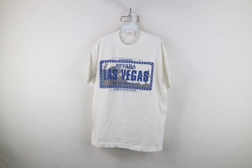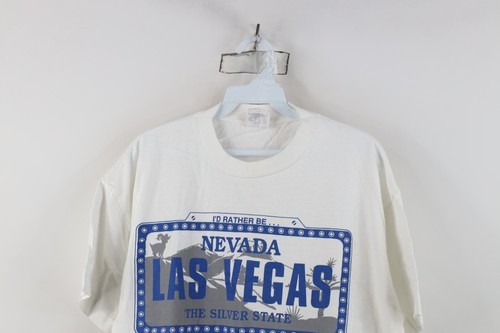 Vintage 90s Streetwear Mens XL Spell Out Nevada Las Vegas License Plate T-Shirt