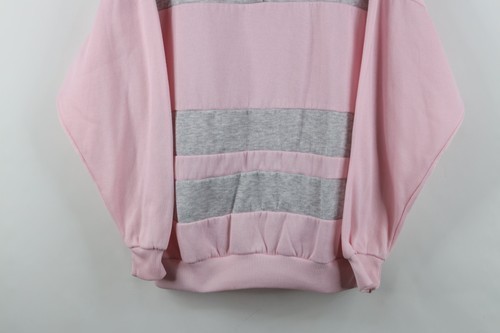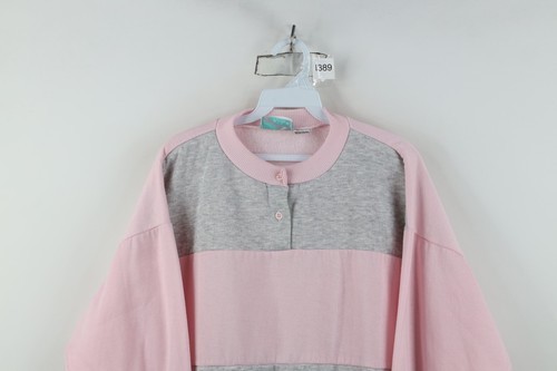 Vintage 90s Streetwear Womens 22W Striped Color Block Henley Sweatshirt Pink