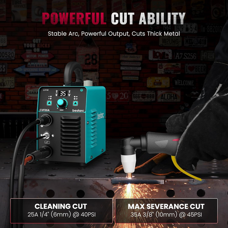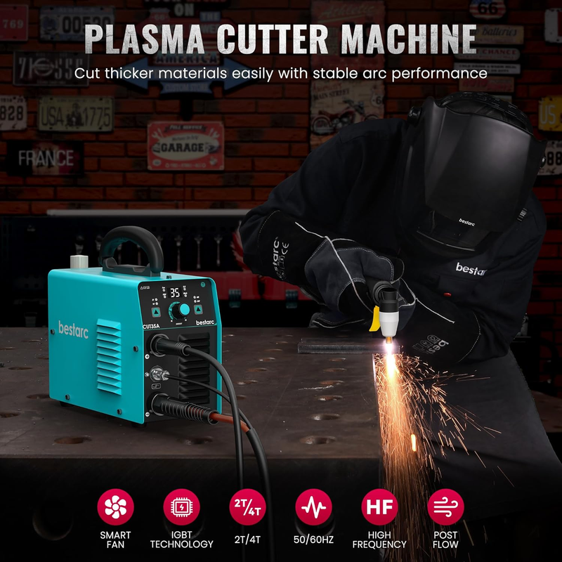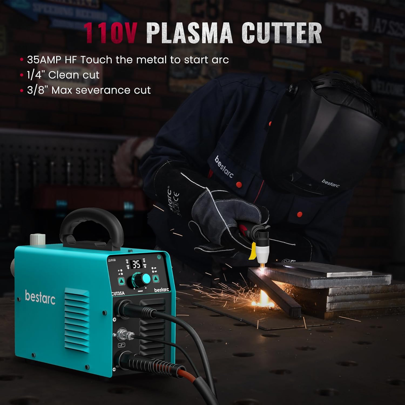 35Amps 110V Plasma Cutter Machine, IGBT Inverter Bestarc Plasma Cutting Machine, 1/4" Clean Cut 1/2" Max Cut, Post Flow, 2T/4T for Beginners DIY