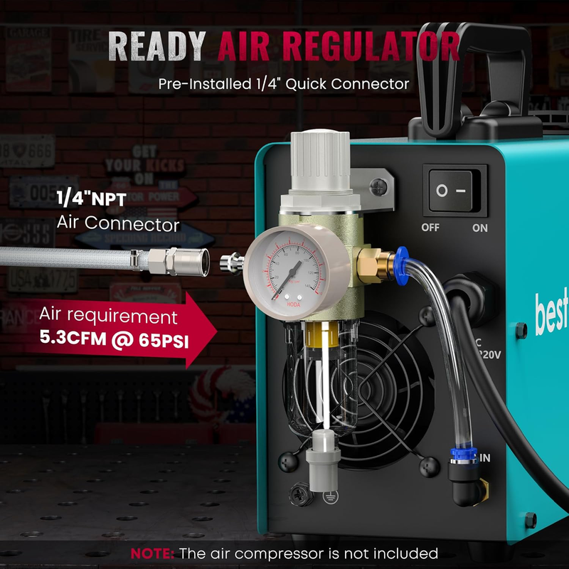 16mm Max cutting thickness @110V 50PSI, Built-in Regulator, Plasm |