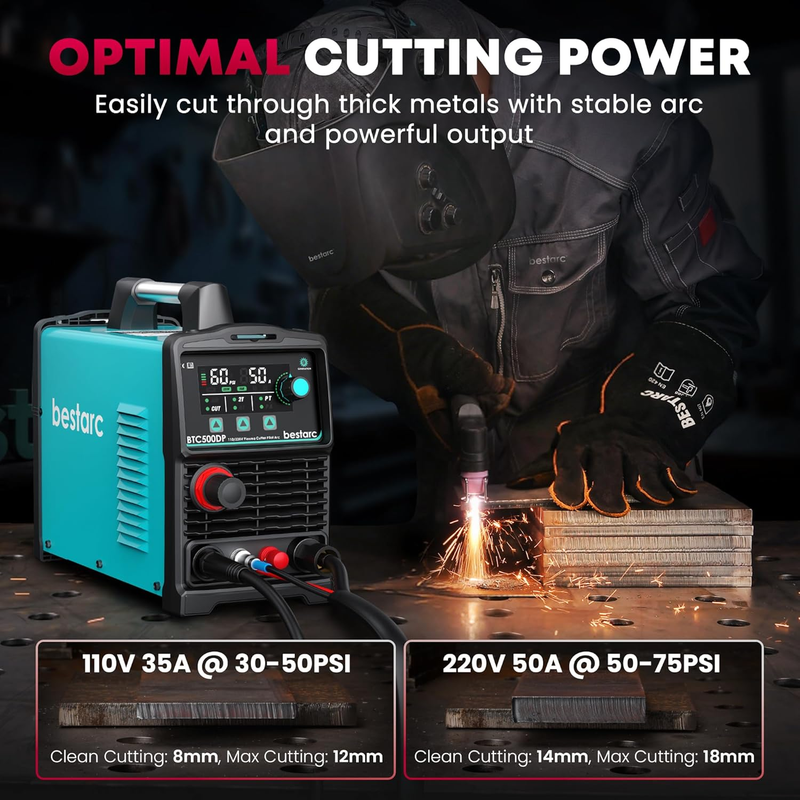 50A Bestarc Plasma Cutter Machine 110/220V Dual Voltage, 1/2 Inch Clean Cut 3/4