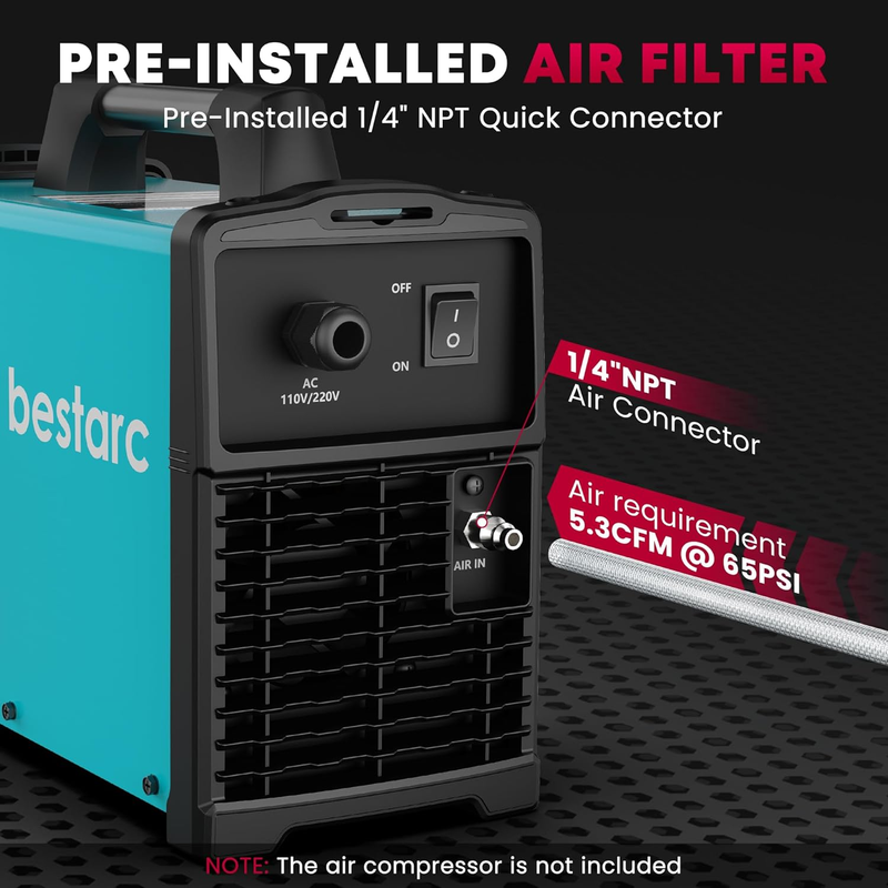 50A Bestarc Plasma Cutter Machine 110/220V Dual Voltage, 1/2 Inch Clean Cut 3/4 Inch Max Cut, Post Flow Mesh, 2T/4T for Beginners DIY