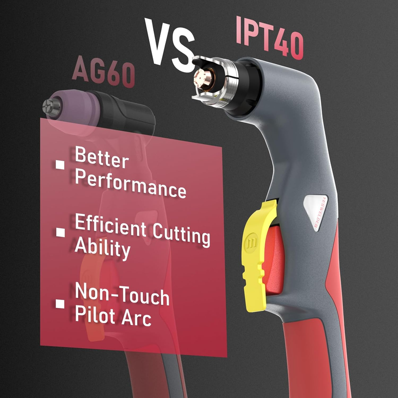 NON-TOUCH PILOT ARC: The pilot arc IPT40 torch has better cutting performance, which efficiently cuts through rough, painted, and rusty surfaces. Non-touch pilot arc technology allows you to cut without touching the tips to the metal, offering better cutting quality and longer consumable life.