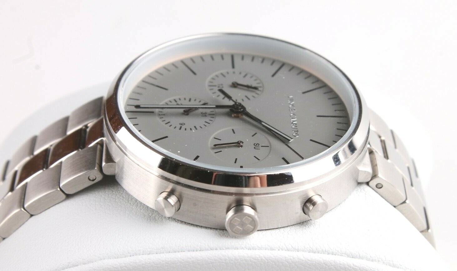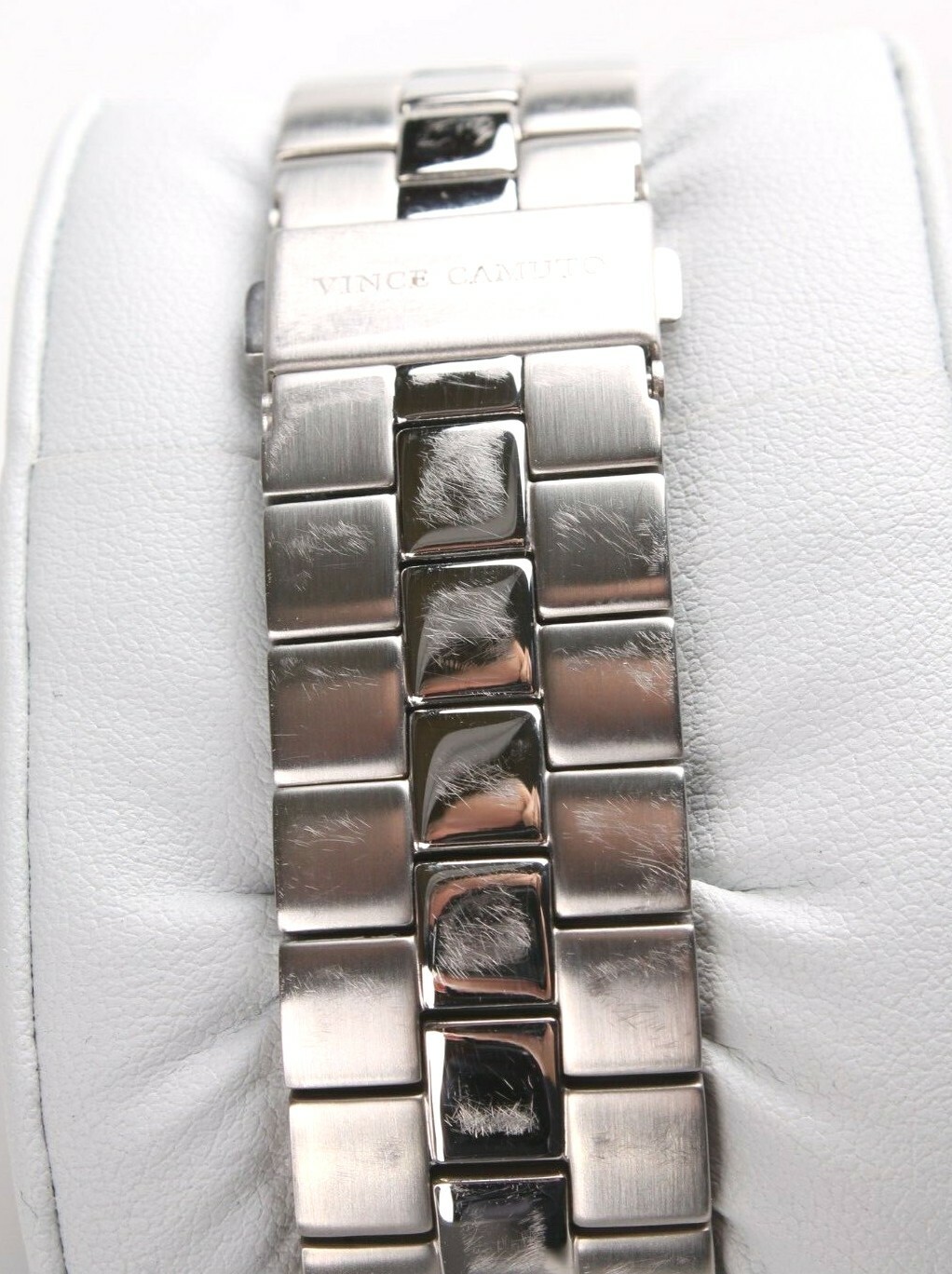 Questo e per a Vince Camuto VC/1098GYSV Multi-Function Grey Carlaggio in acciaio inossidabile in acciaio inossidabile Marchio: Vince Camuto Modello: VC/198GYSV Forma dell'oggetto: rotondo Crystal: minerale Tipo di visualizzazione: analogico Chiusura: piegare con sicurezza Materiale della custodia: acciaio inossidabile Diametro della custodia: 42 mm-45 mm con corona Spessore del caso: 11 mm Materiale a fascia: acciaio inossidabile Lunghezza della banda: ca. 8,5 " Larghezza della banda: 20mm Colore della banda: argento COMPLIO COLORE: grigio Materiale della cornice: acciaio inossidabile Caratteristiche speciali: multifunzione, giorno, data, sottoconti Peso dell'articolo: 4.6 once. Movimento: quarzo Resistente all'acqua: 50 metri